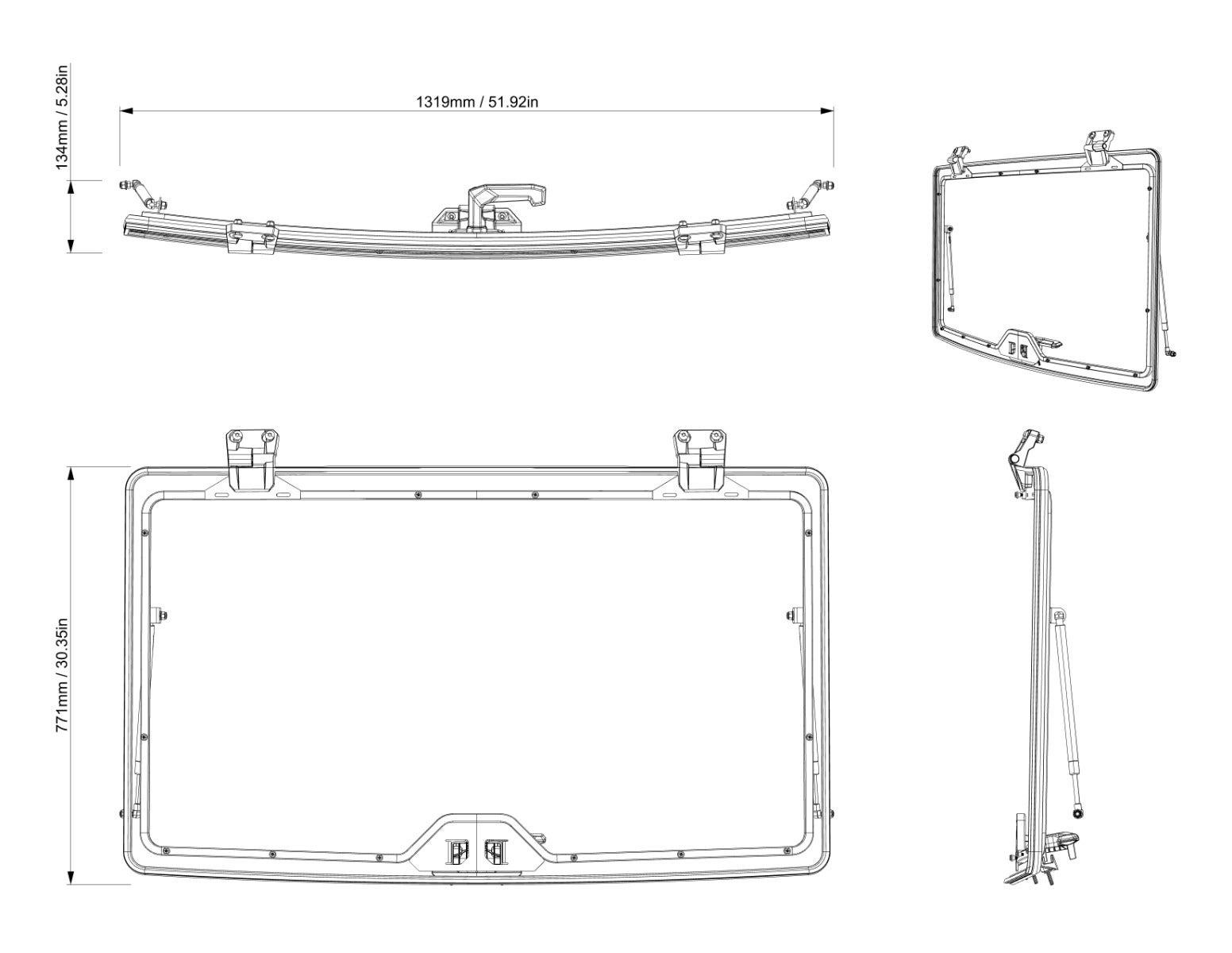 Never choose between protection or air circulation with the Can-Am flip windshield. This hardcoated polycarbonate windshield has three positions to allow different level of air circulation as you ride. From fully closed to fully open, the windshield lever also locks in a slightly open position to allow excellent protection from the elements while still offering airflow in the cab. Its enhanced handle allows for quick, low-effort opening. High-impact-resistant Makrolon† hardcoated polycarbonate full windshield in metal frame. Provides excellent optical clarity and better abrasion resistance. Seals firmly against the cage and protects rider and passenger from the elements while allowing for controlled airflow. 3-position flip can be set at fully closed, ¼ open, or fully open. Gas-shock-assisted operation. Ideal for muddy conditions.