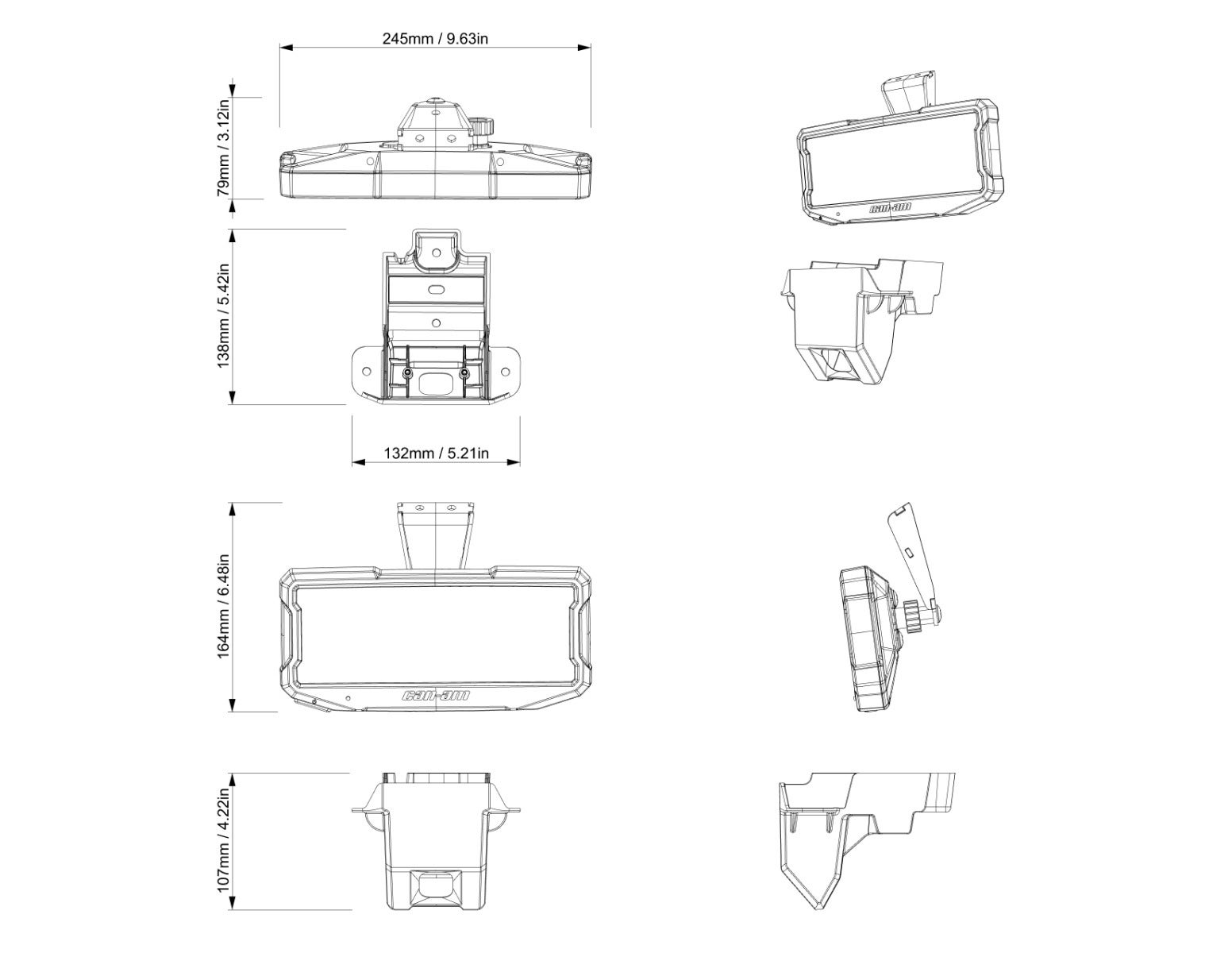 It goes without saying that visibility and safety are crucial when it comes to off-roading. That’s where our Rear View Camera & Monitor comes into play, featuring a waterproof rear view mirror with a built-in HD monitor for effortless viewing of multiple camera feeds. The included rear camera boasts infrared night vision, enabling safer driving in total darkness. Its 170-degree wide-angle lens effectively minimizes blind spots, capturing a more comprehensive view behind your vehicle and boosting overall situational awareness. Designed for easy installation, this kit integrates seamlessly into vehicles, requiring no complex modifications. If you’re seeking a durable, user-friendly rear-view solution that doesn't depend on touchscreens, this the Rear View Camera & Monitor Kit is it. Fully waterproof rear view mirror and monitor kit. See exactly what you need to see with the multiple camera feeds from the rear view camera. This unit is designed as a direct replacement for vehicles that come with a stock rearview mirror (the screen is integrated in the unit's replacement rearview mirror). The camera uses infrared light for night vision capabilities. Provides a 170 degrees viewing angle. Designed only for models without Touchscreen Display. Possibility of adding the Front View Camera (715009408) for optimal vision around the vehicle.