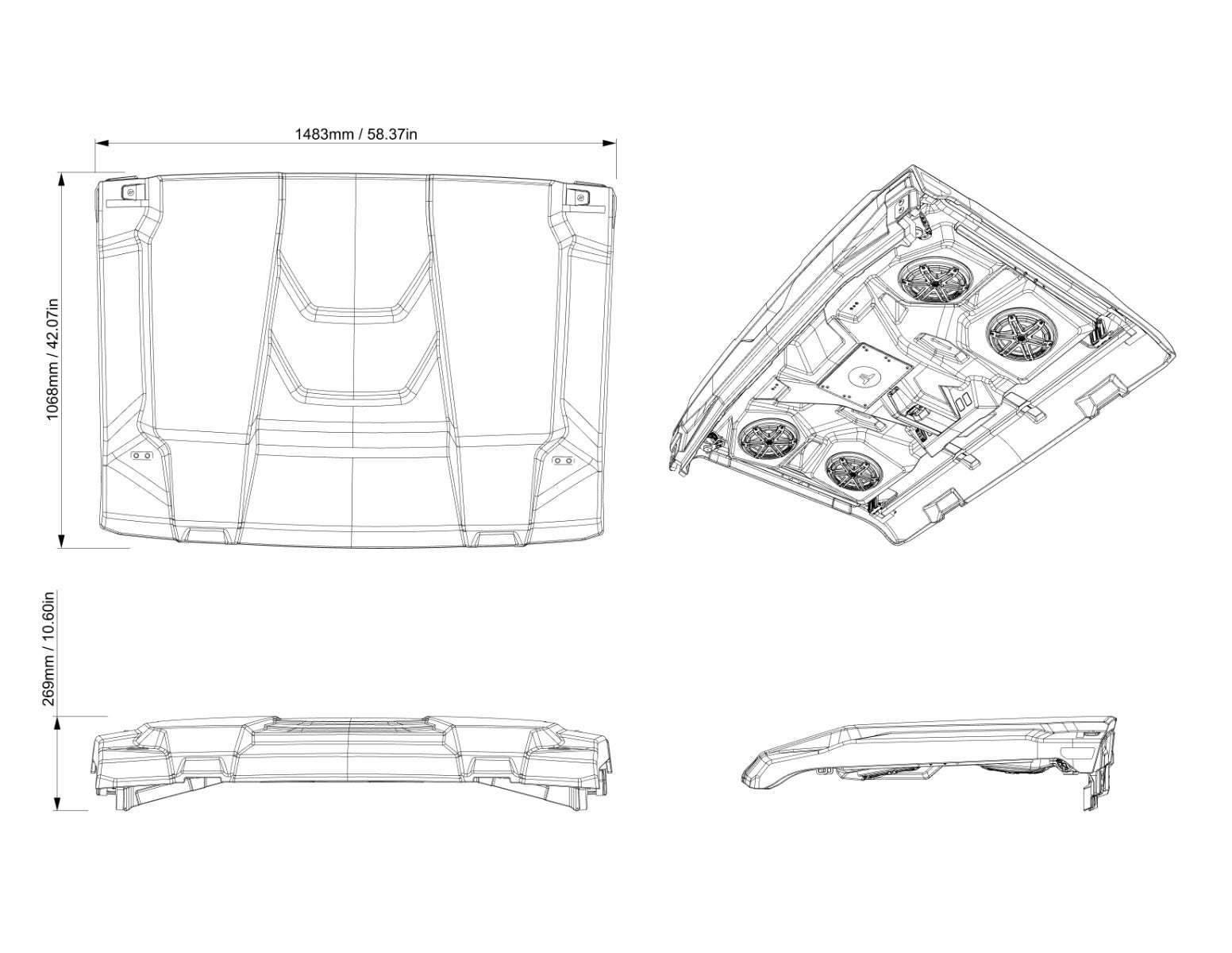 Exceptional sound quality meets durability with the Can-Am JL Audio Roof Level 4. This advanced audio roof system includes four weatherproof 7.7-inch coaxial speakers paired with a robust 500-watt MX500/4 amplifier, ensuring powerful, clear audio performance in any environment. The speakers feature adjustable RGB LED cone illumination, so you can personalize your ride’s ambiance through an intuitive smartphone app. Control all audio effortlessly via the vibrant 10.25-inch Color Touchscreen Display, designed for ease of use while on the go. Installation is quick and hassle-free, making it simple to upgrade your Can-Am vehicle without extensive modifications. Built with tough, weather-resistant materials, this premium audio roof ensures long-lasting enjoyment regardless of the elements. Full roof with premium JL Audio System. Weatherproof components include four 7.7″ coaxial speakers and a 500-watt amplifier (MX500/4). Speakers include an adjustable RGB LED cone illumination, controlled via an app on your smartphone. Controlled by the 10.25" Color Touchscreen Display. Easy to install and connect. Included a Dome light. If you have an ACM installed, smart mode enables automatic on/off functions of the light. Compatible with the pre-wired Can-Am JL Audio Subwoofer & Amplifier Kit (715008094) for quick, easy installation. When combined with the Can-Am Audio System - Level 3 (715009197) , it provides the ultimate sound experience. Requires the Can-Am JL Audio Source Unit (715010002) for vehicle without 10.25'' Color Touchscreen Display and installed in the center dashboard for a car like experience. Requires the Cable Cover and Roof Power Cable Kit (715010489) for installation. Not compatible with the Cargo Rack Multi-position (715009148) or Cargo Rack MAX (715009170). Vol Up/Down Switch (710010952) can be added to control volume separate from the Touchscreen control.