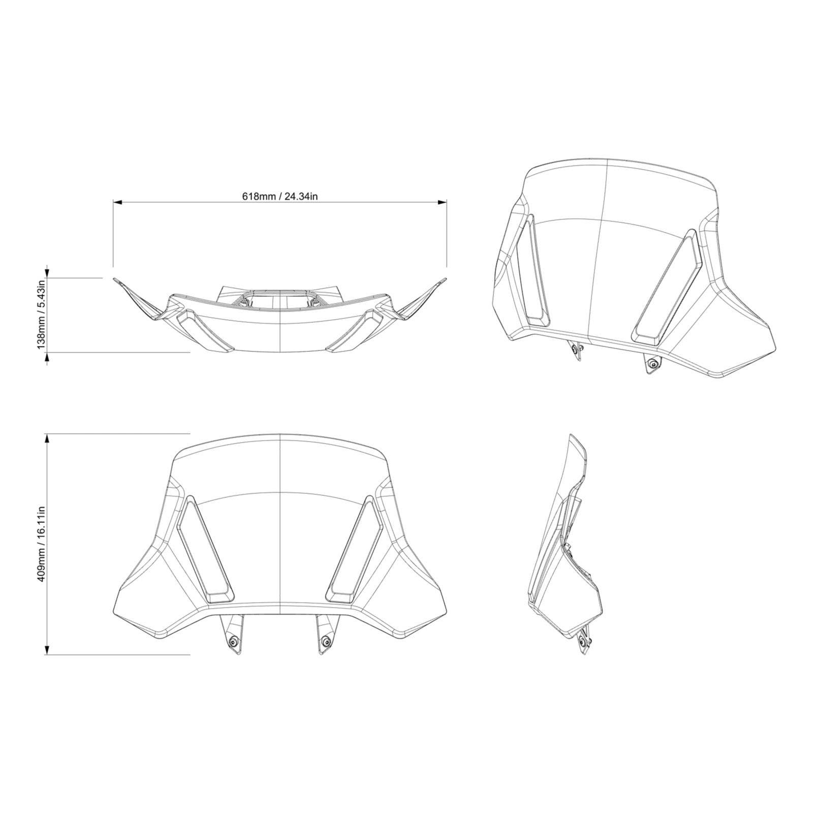 Introducing the Adventure High Windshield - Hardcoated for the Can-Am Outlander, where durability meets adventure! This bold windshield stands 14 inches tall, offering exceptional protection against wind and winter weather, thanks to its 4mm injected polycarbonate construction. The ultra-resistant Quantum® coating ensures excellent optical clarity and outstanding abrasion resistance, making it perfect for those rugged off-road escapades. With a 3-position adjustable height, you can tailor your ride for ultimate comfort. Pair it with the Console Extension and optional Side Wind Deflectors for enhanced protection. Gear up and embrace the wild with confidence! Adventure windshield with 3-position adjustable height. 14in (36cm) high to protect against wind and winter weather. Made of injected polycarbonate with a thickness of 4mm (5/32in) with ultra-resistant Quantum† coating. Provides excellent optical clarity and better abrasion resistance. Console Extension (715005368) is required for installation. Side Wind Deflectors (715005862) available for added protection.