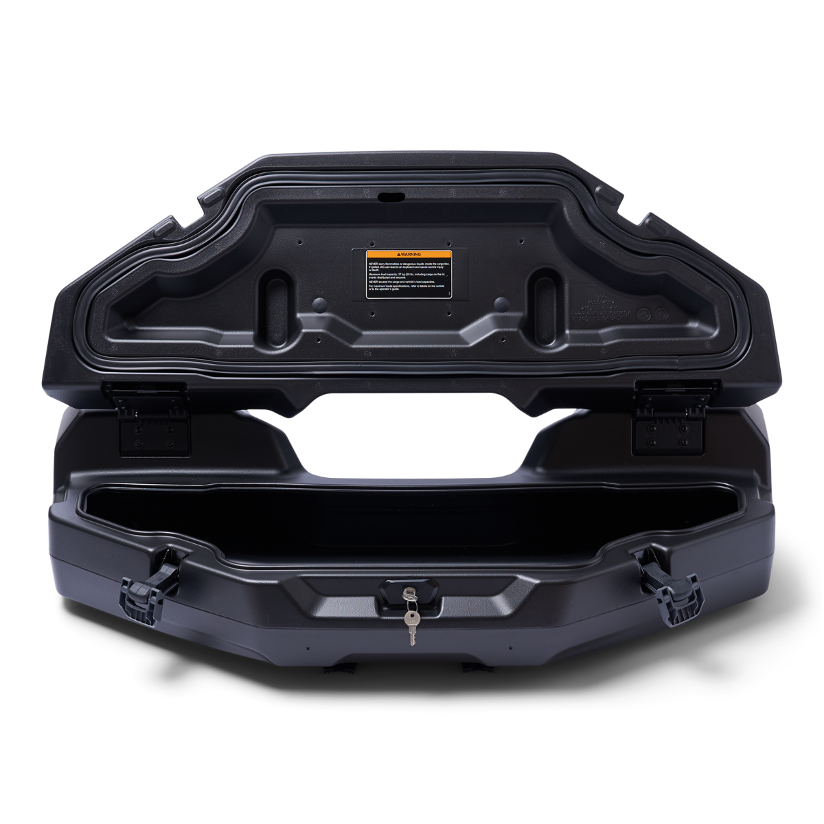 Introducing the LinQ Cargo Box (53L) from Can-Am, a must-have for every off-road enthusiast. Crafted from durable polyethylene, this cargo box boasts an impressive storage capacity of 14 gallons (53 liters), making it perfect for all your adventure gear. With its innovative LinQ system, installation and removal are a breeze, whether you choose to mount it on the front or rear racks. The new ergonomic latch system ensures excellent sealing, keeping your belongings secure. Plus, it’s lockable for added peace of mind. Elevate your cargo game with the LinQ Cargo Box and embrace the thrill of the ride! Made of polyethylene. Storage capacity of 14 Gal (53L). Easy to install and remove with the LinQ system. Can be installed on the front or rear racks. New ergonomic and resistant latch system offers excellent sealing. Possibility to install LinQ 16'' accessories on the cover and increase the cargo capacity. Ability to install Tool Holders (715008896) on the box. Lockable with a lock on the front of the box (2 keys included).