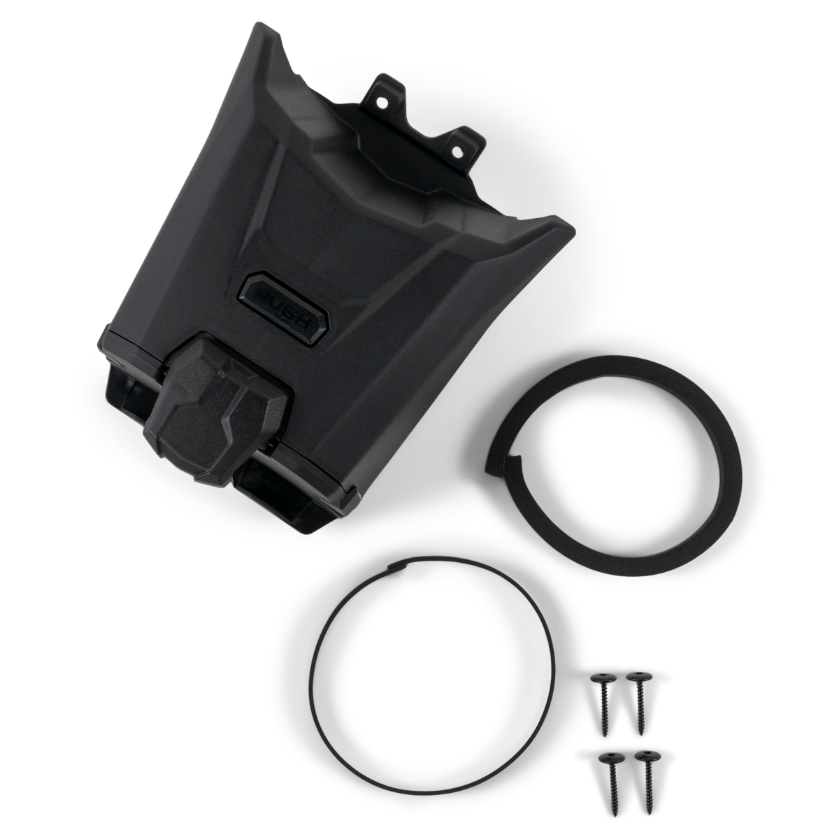The Can-Am Electronic device holder allows for a safe integration of any phone of tablets to the Maverick X3. The ingenious design adds a weather resistant glove box also designed to secure the most commun electronic devices. The sliding and locking upper hand of the holder adapts to various widths and heights of phones and tablets, allowing the rider and passenger to access maps, music and their favorite apps, greatly enhacing the riding experience. A great in-ride entertainment system platform. Robust injected-polypropylene construction allows for right fit and easy installation. Adjustable unit safely holds most tablets and smartphones between dimensions of 5.1” (13 cm) and 10" (25,4 cm) (with protective case). Combines seamlessly with Complete MTX Audio System and Rugged Radios Intercom System. Allows the installation of Garmin Montana 680T GPS. Integrated storage (1 Gal (3.8L) capacity) with access to the dash 12V outlet for device charging.