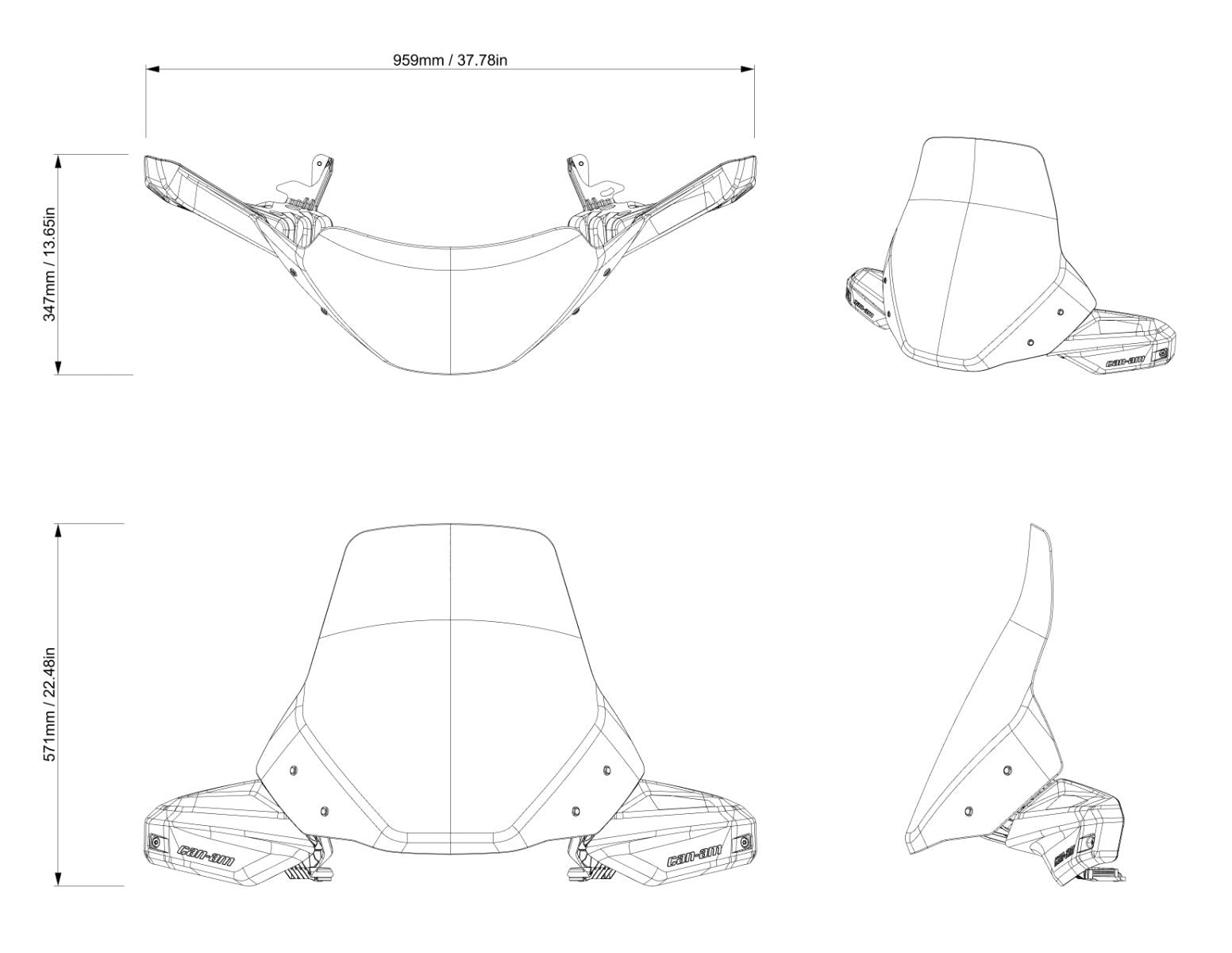 When it comes to superior wind and cold protection during winter, nothing beats the Can-Am Extra High Windshield Kit. Made from high-grade polycarbonate, this 16” (41 cm) windshield ensures lasting clarity and toughness. It also features stylish, integrated handguards to shield your hands and enhance your ride’s looks. Crafted to offer both exceptional protection and a boost in comfort, it's the upgrade your Can-Am vehicle has been waiting for. 16” (41 cm) high, for wind protection and winter applications. The windshield is made of polycarbonate, 1/8'' thick (3 mm). Integrated plastic injected handguard with Can-Am logo. Requires Handguards Frame Kit (715010295) for installation on units with no factory handguards. Not compatible with Integrated Audio System (715005354) or Console Extension (715009218 or 715005368).