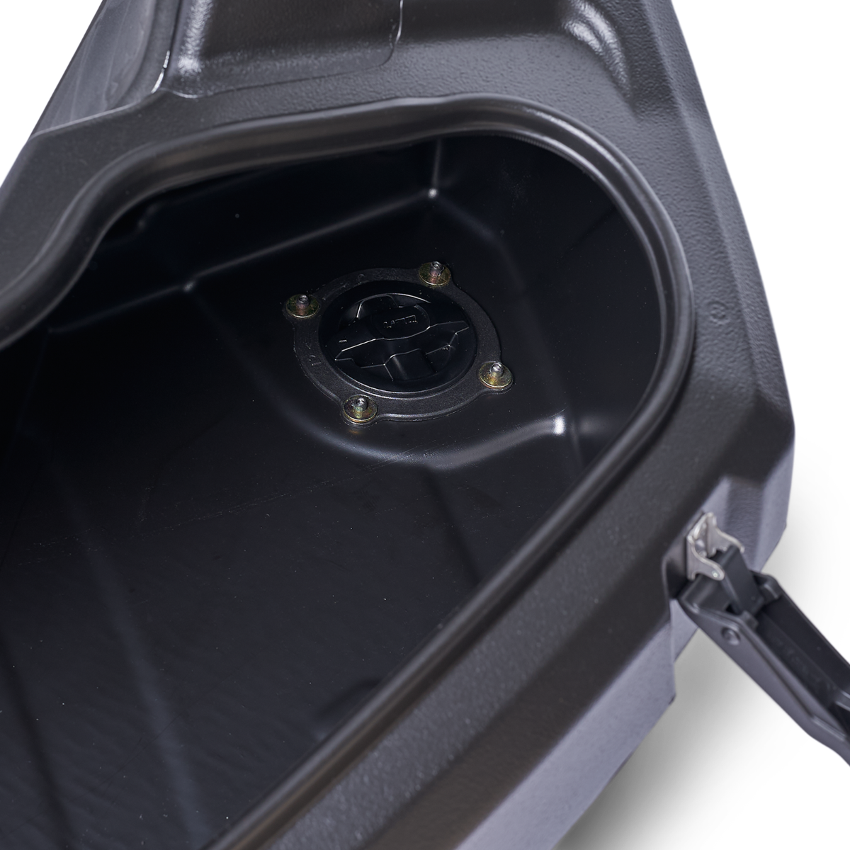 The LinQ 23 Gal/ 86L cargo box offers practical and cargo space with the versatility of LinQ. The secure, LinQ mounting allows for an easy installation, with 2 quarter turn levels located at the bottom of the trunk box. This intuitive locking solution allows for quick and easy options of adding or removing the accessory from the vehicle. Making the process of loading cargo and cleaning the vehicle a lot easier. LinQ mounted for easy-on, easy-off installation. Holds cargo safely and securely while riding. 23 US Gal (86 L) capacity. ATV: LinQ Base (715002350) is required for G2L, LinQ Luggage Rack (715001734) is required for G2S. Defender: LinQ Cargo Rack (715004281) is required. Maverick Trail, Maverick Sport, Maverick Sport MAX: LinQ Cargo Rack (715003702) or LinQ Pivoting Rack (715004708) is required. Commander: LinQ Cargo Rack (715006815) is required. Maverick X3 : Not compatible with Standard LinQ Rack if LinQ Pivoting Rack is installed, LinQ Pivoting Rack (715002881 / 715003439) is required.