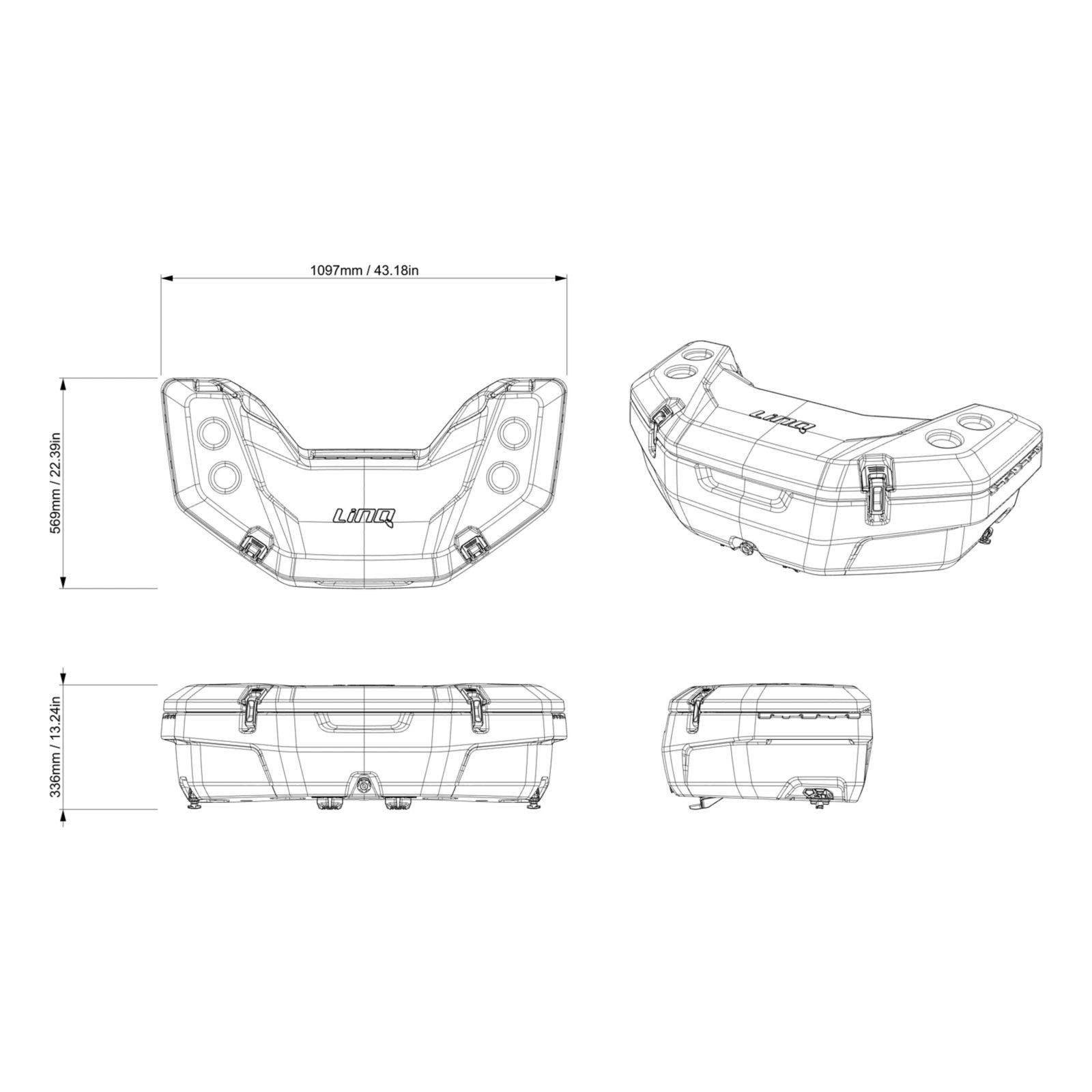 The LinQ 9.2 US Gal (35 L) Cooler can keep anything fresh: drinks, snacks, meals — you name it. It features a premium-quality foam insulation for optimal ice retention, a dry basket to protect food from moisture and a drain plug at the bottom to get rid of extra water. Not only is it efficient, but it's also hyper-secure, always staying locked in place with a quarter turn thanks to the LinQ installation system. Trust us, you can even rely on this accessory to stay sealed on the bumpiest rides. So you can go hard on the trails without thinking twice! LinQ-mounted for efficient and secure storage, locked in place with only a quarter turn. Easy to install, easy to remove using the LinQ system. Installation in LinQ 36'' configuration. Made of polyethylene for exceptional rigidity and durability. Storage capacity of 9.2 Gal (35 L). Lock the cooler on the vehicle using the LinQ Lock (860201968). Premium-quality foam insulation for optimal ice retention. Molded-in handles for quick installation and removal. Option to add a 5-slot LinQ Lite Rail on the side and at the rear of the cooler. A dry basket is included to protect your food from water. Drain plug at the bottom to get rid of excess water. The new ergonomic and resistant latch system ensures the top is tightly sealed. Innovative way to hold 12 cans (355 ml).