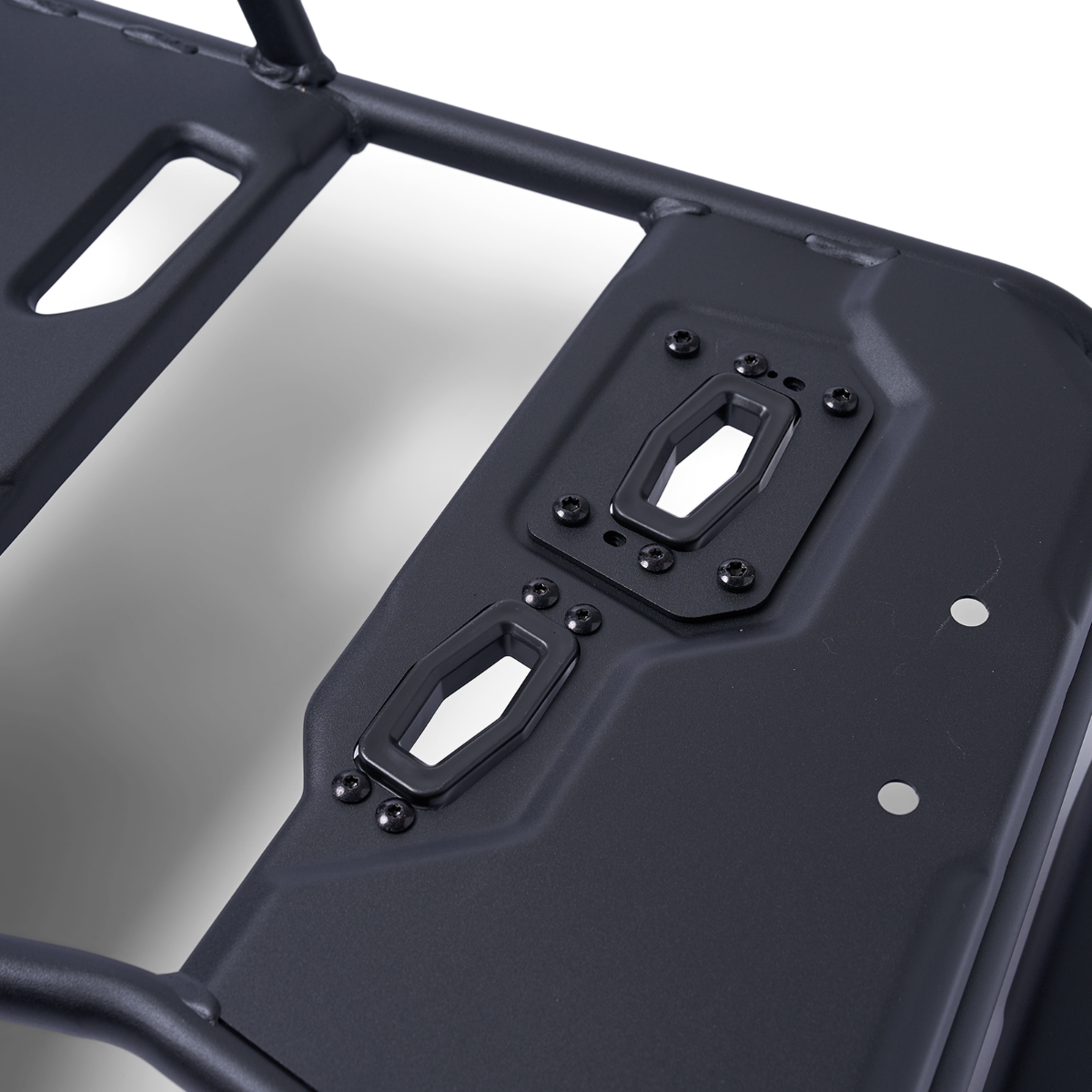 Introducing the LinQ Cargo Rack, a must-have addition to your powersports gear collection. Made from strong and durable steel, this rack ensures your cargo stays secure during your adventures. With easy, toolless installation using the LinQ system, you can quickly attach LinQ accessories for added functionality. The multiple bungee cord and tie-down points provide versatility for securing your items, while the 15" clearance under the rack allows for additional storage. Upgrade your cargo capacity with the LinQ Cargo Rack today! Strong, durable steel rack 7/8″. Easy and toolless installation with LinQ system. Allows the installation of LinQ accessories. Allows multi-level storage on cargo bed. Helps keep cargo securely in place. Multiple bungee cord and tie-down points. Kit includes LinQ base. Not compatible with 32 gal (124 L) Trunk Box. 15″ clearance under the rack for other cargo. Commander & Commander MAX: Not compatible with LinQ Gun Case (715009240).