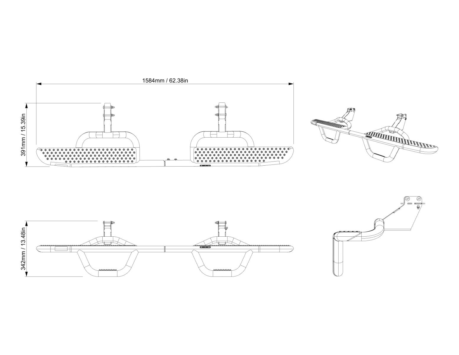 With its robust 1.5” (3.8 cm) diameter steel construction and integrated tubular design, this rear bumper is built to last. It offers increased protection for your rear cargo box and lower box corners without compromising the normal function of your tailgate.To top it all off, our rear bumper features an anti-corrosion coating on both the inside and outside, paired with a durable powder-coat finish that ensures it remains resilient against the elements. Heavy-duty 1.5″ (3.8 cm) diameter steel construction and integrated tubular design. Integrated lower and upper grip step for easy access to the cargo bed. Increased protection of rear cargo box and lower box corner while allowing normal tailgate function. Inside and outside anti-corrosion coating with durable powder-coat finish.