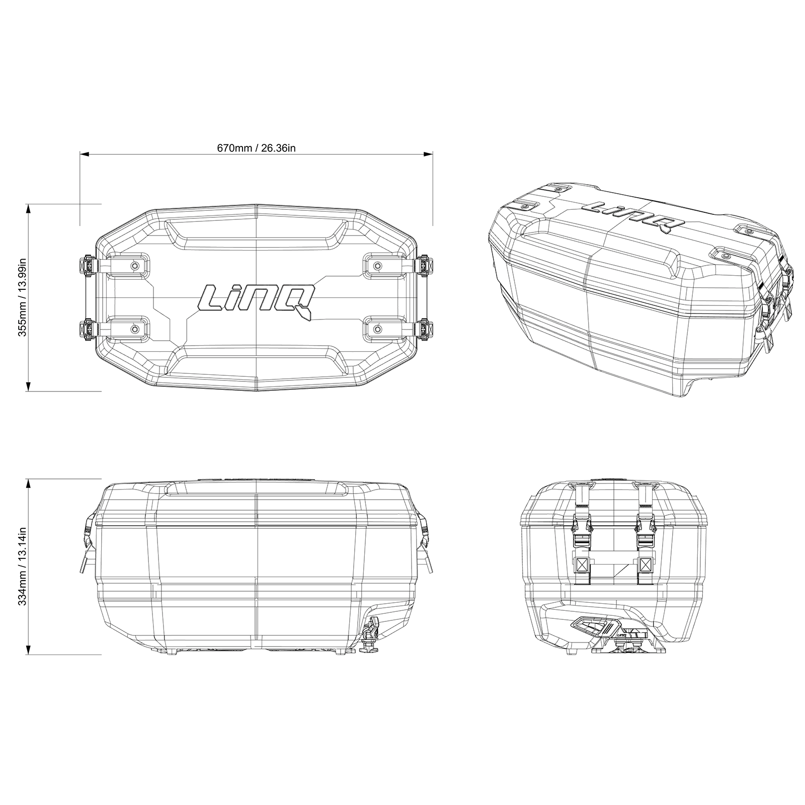 The LinQ Utility Bag - 50 L is the ultimate companion for your Ski-Doo work days. This fully waterproof, semi-rigid bag boasts a roll-top design that secures your gear tightly, ensuring it stays protected from the elements. The innovative LinQ system allows for quick and easy installation on your snowmobile's tunnel or Multi-LinQ plate, while the quick-release straps grant effortless access to your essentials. Fully waterproof, semi-rigid, roll-top design bag secures gear tightly. Quick, easy and secure LinQ system installation on the tunnel, on the Multi-LinQ plate or on top of some cargo boxes (860202759, 860201781 and 860202802). Possibility to install two bags on Multi-LinQ plate or on Stackable LinQ Deck (860202746). 50 liter (11 us gallon, 3.052 cu in) capacity. Quick release straps to easily access storage underneath.