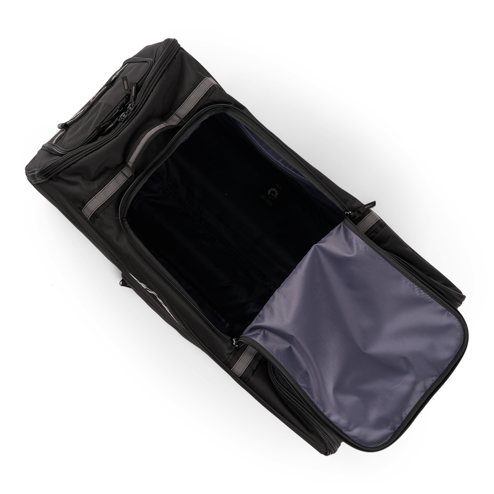 Introducing the Ski-Doo Stand-Up Roller Gear Bag, your ultimate companion for snowmobiling adventures. Crafted from heavy-duty 900D polyester, this bag is built to withstand the rigors of the powersports world. Its structural skeleton guarantees stand-up stability, whether you're loading up or unpacking. Equipped with a waterproof cover, it protects your gear against the elements, ensuring your essentials stay dry. The compartmentalized design features dedicated zones for helmets, goggles, and boots, making organization a breeze. With a generous capacity of 140 liters and dimensions of 85 cm x 47 cm x 40 cm, this bag is as bold as your passion for the ride. Structural skeleton ensures stand-up stability when loaded or unloaded Waterproof cover included for extra protection against the elements Compartmentalized design places helmets, goggles, boots and your gear in dedicated zones Heavy duty 900D polyester material Liters 140L Dim 85 cm x 47 cm x 40 cm