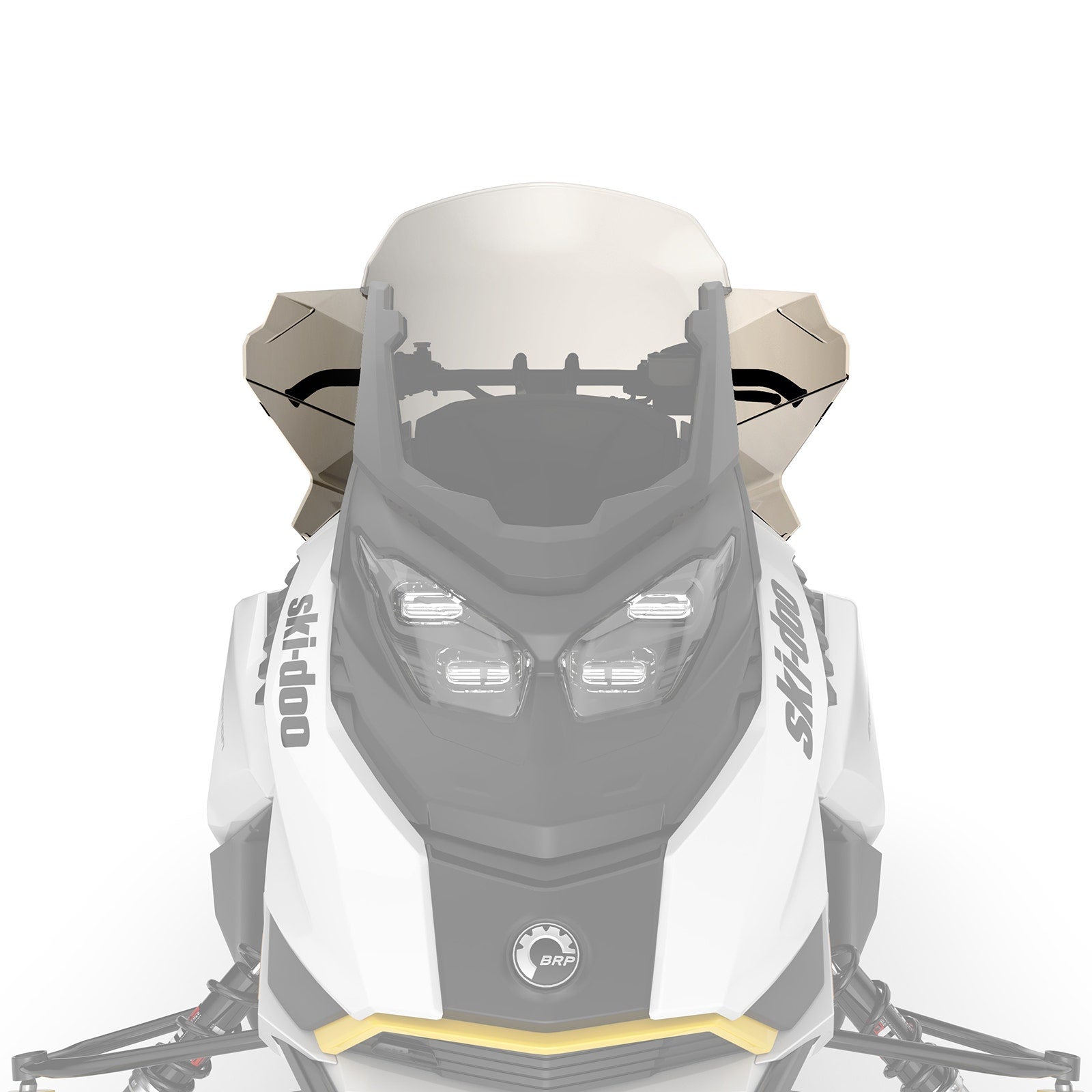 Don’t let a windy day take the wind out of your sails. Cut down the impact of a cold breeze with the Ski-Doo Windshield Side Deflector Kit. Install these deflectors to power up your snowmobile and add extra deflection protection. This accessory helps guard you from the elements, allowing you to ride for longer. Increases wind deflection for windshields. Compatible with Adjustable Windshield - Low to Medium (860201820). Not compatible with One-Piece Lightweight Hood.