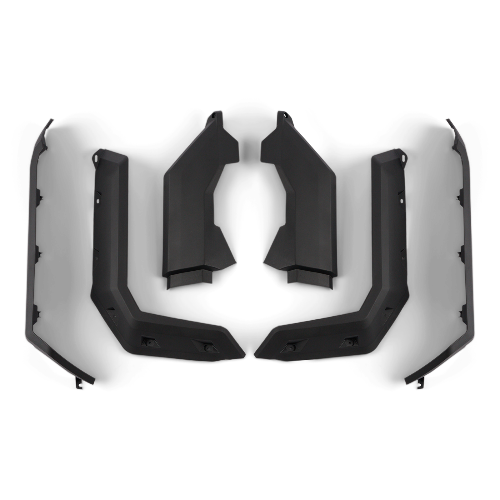For those who ride out of the beaten path or in soft conditions, protect yourself and your passengers from mud, dust or anything projected from your wheels with the Defender fender flares. These heavy duty wheel arch extensions extend the stock vehicle protection. Robust injection-molded polypropylene construction. Perfect for keeping mud and debris outside the vehicle. Includes front and rear extension, and all mounting hardware. Ideal for track equipped vehicles.