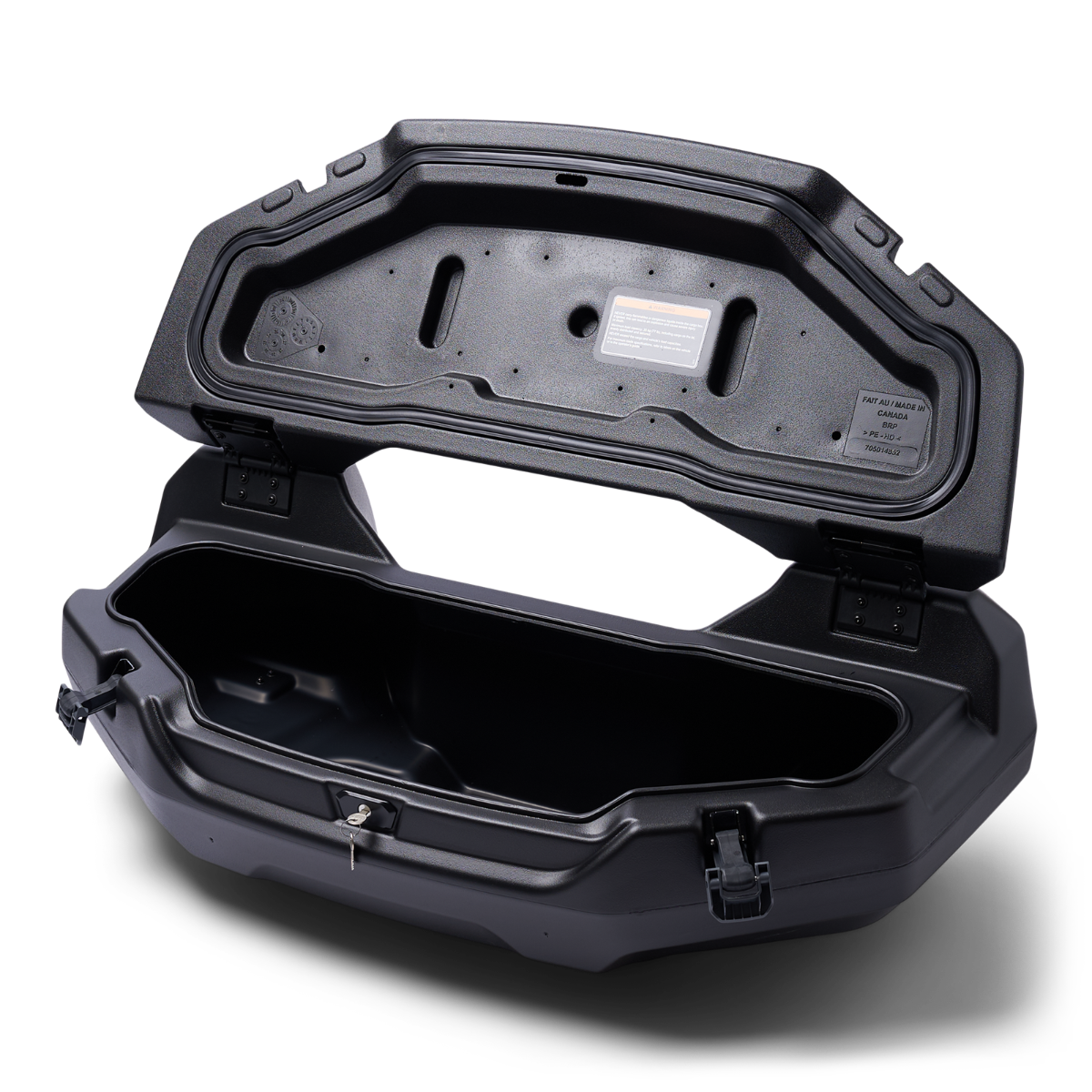 Upgrade your ATV with the Can-Am LinQ Trunk Box (145L) for unmatched storage capacity and convenience. Crafted from durable polyethylene, this trunk box seamlessly integrates with your rear rack, providing a massive 31 Gal (145L) storage space. The LinQ system ensures easy installation and removal, while the ergonomic latch system offers top-notch sealing. With 4 LinQ anchors included, you can secure your cargo effortlessly. Plus, enhance your setup with LinQ 16'' accessories, and don't forget the option to attach Tool Holders. Lockable for security, this trunk box comes with 2 keys for peace of mind on your off-road adventures. Polyethylene Trunk Box replacing the rear rack for perfect integration and to increase cargo capacity. Storage capacity of 31 Gal (145L). Dimensions: 66 cm L x 119,3 cm W x 39,7 cm H Easy to install and remove with the LinQ system. LinQ anchors must be installed in the rear cargo compartment (4 LinQ anchors included). Possibility to install LinQ 16'' accessories on the cover to increase the cargo capacity. New ergonomic and resistant latch system offers excellent sealing. Ability to install Tool Holders (715008896) on the box. Lockable with a lock on the front of the box (2 keys included).