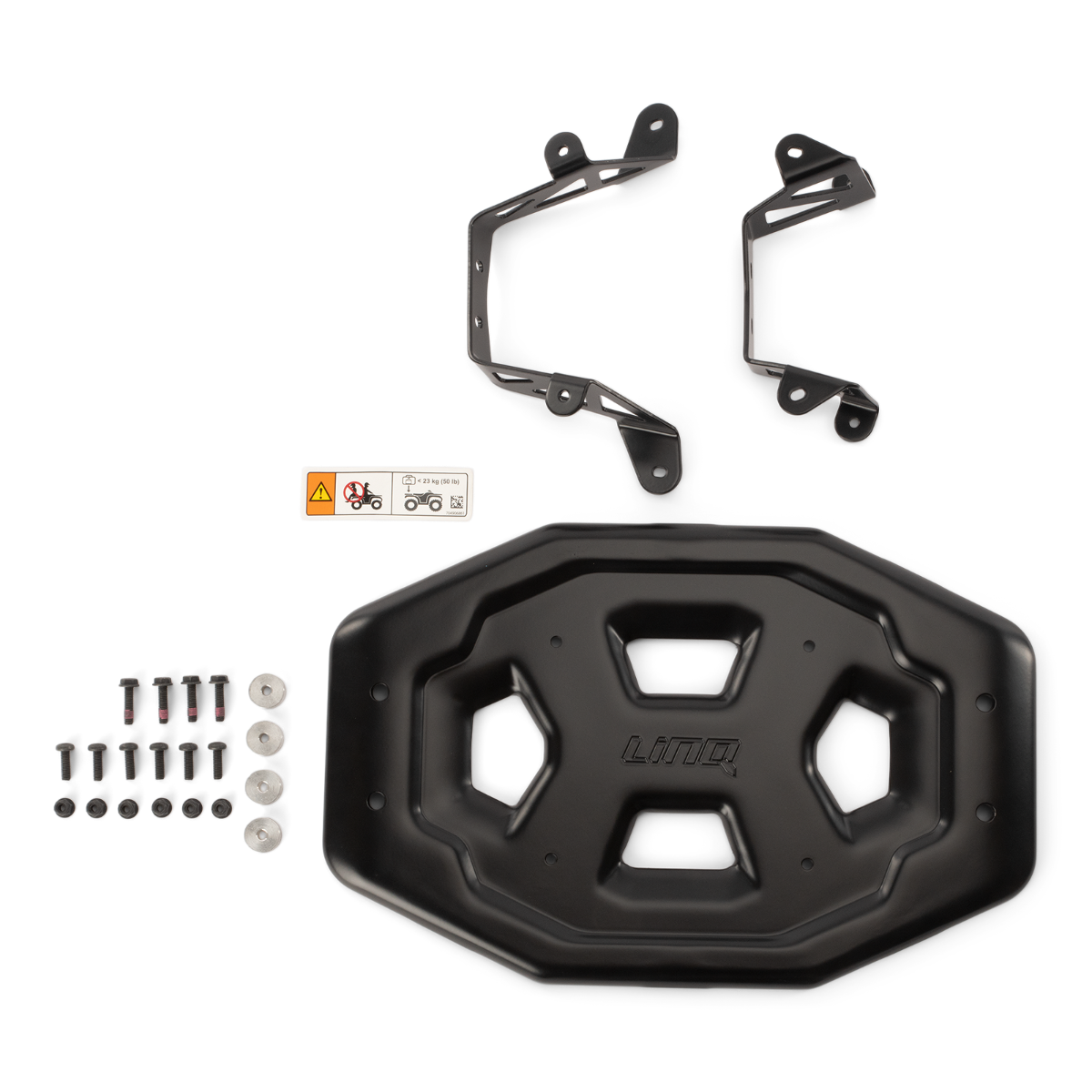 Ready to be ready for anything? The LinQ system brings riders toolless, quick-attach, quick-remove solutions so they can bring more of what they need on every adventure. Installing the LinQ Base Plate for Can-Am vehicles is the first step. Then, you can effortlessly reconfigure your ride to increase cargo space. Slide modular boxes and bags onto the plate, or snap in your tool and gun holders as you set out for a hunting trip. Pack your things and hit the road! Enables use of 16″ wide LinQ base accessories on G2S to extend cargo options and journey opportunities. Requires LinQ base kit (715008125).