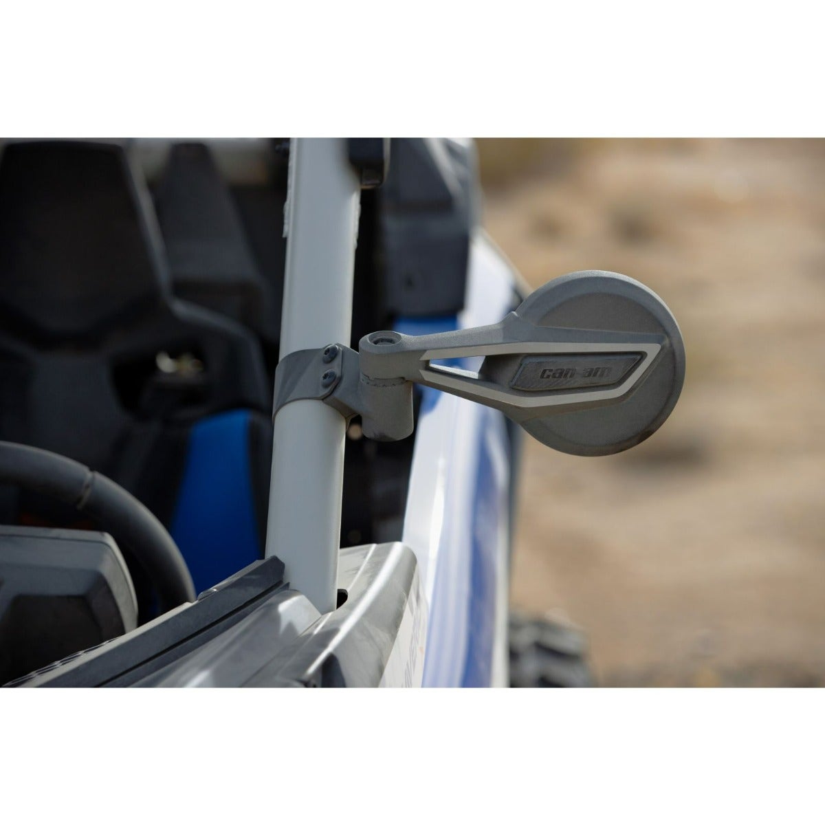 With their unique racing-sleek design, our SxS Rally Side Mirrors add a sportier look to your vehicle without compromising on function. Their convex surface provides a wider field of view and better visibility of your ride and surroundings. Looking for great flexibility? With a multi-position adjustable ball-joint mount, that's what these mirrors deliver: riders of all heights can adjust the angle according to their needs. And when you're done using them, their spring-loaded pivots let you fold them back completely until the next use. Sleek design with unique racing style. High-quality black moulded aluminum for extreme durability. 4″ (10 cm) convex surface provides a wider field of view and better visibility around the unit. Can be installed at any height on the cage A-pillar for optimized rider vision. Multi-position adjustable ball-joint-mounted mirrors. Spring-loaded pivots let mirrors fold back completely. Sold in pairs. Not compatible with Glass Windshield.