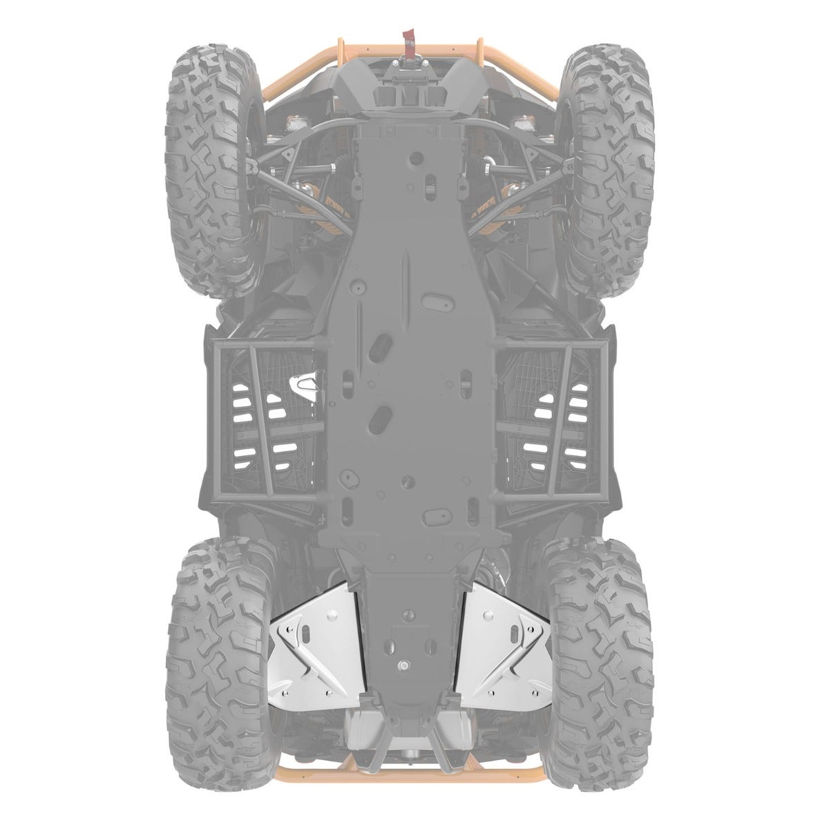 Boldly go where others fear to tread because you’ve got the Rear Aluminum A-Arm Protectors. Their extra-strong, durable construction protects the underside of your vehicle's suspension, deflecting debris and reducing damage risk. The protectors also reduce friction along the A-arm, so you travel more smoothly even on rocky terrain. Get the performance and peace of mind only an ATV aluminum rear protection can provide! 1/8” (3 mm) thick, lightweight and durable design. Shield the CV joints and rubber boots. Drain holes to release water. Easy to install. Sold in pairs. Compatible with Apache Track Systems and ProMount Plows.