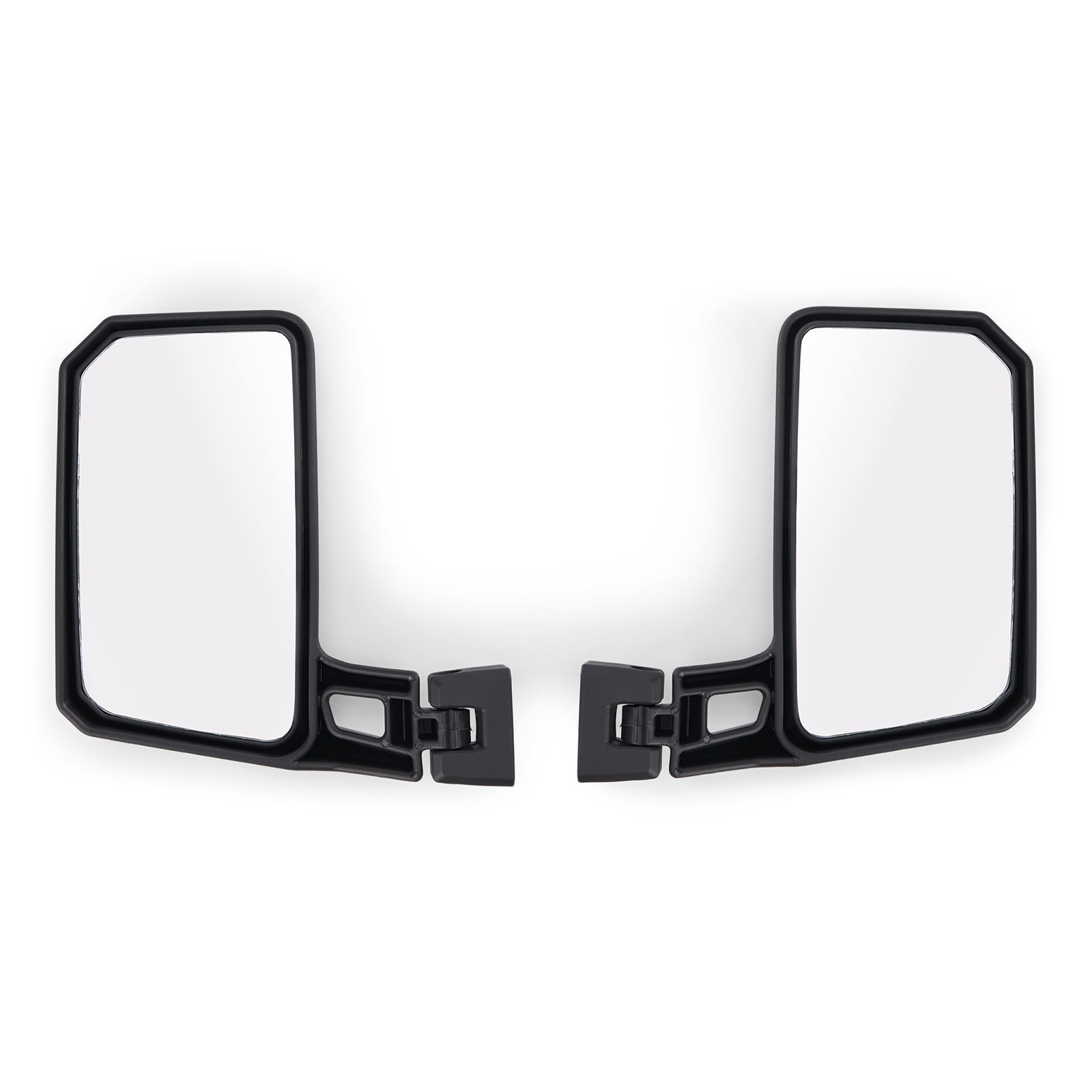 Dominate every twist and turn with our robust Side Mirrors. Crafted from resilient 6/6 black nylon and anchored by die-cast aluminum brackets, these convex mirrors are a fusion of style and endurance. They’re fully adjustable to your line of sight and expand your field of vision to help you conquer every corner of the trail with safety and confidence. Spring-loaded pivots also allow these mirrors to fold up completely when you’re riding around a tight spot. Sold in pairs. Rugged black nylon 6/6 construction with coated cast-aluminum mount. Dual adjustment (horizontal and vertical) will suit any rider. Convex optics deliver optimal field of view (FOV). Spring-loaded pivots let mirrors fold back completely. Fit with and without doors and half doors. Sold in pairs. Not compatible with Soft Doors and Soft Cab Enclosures.