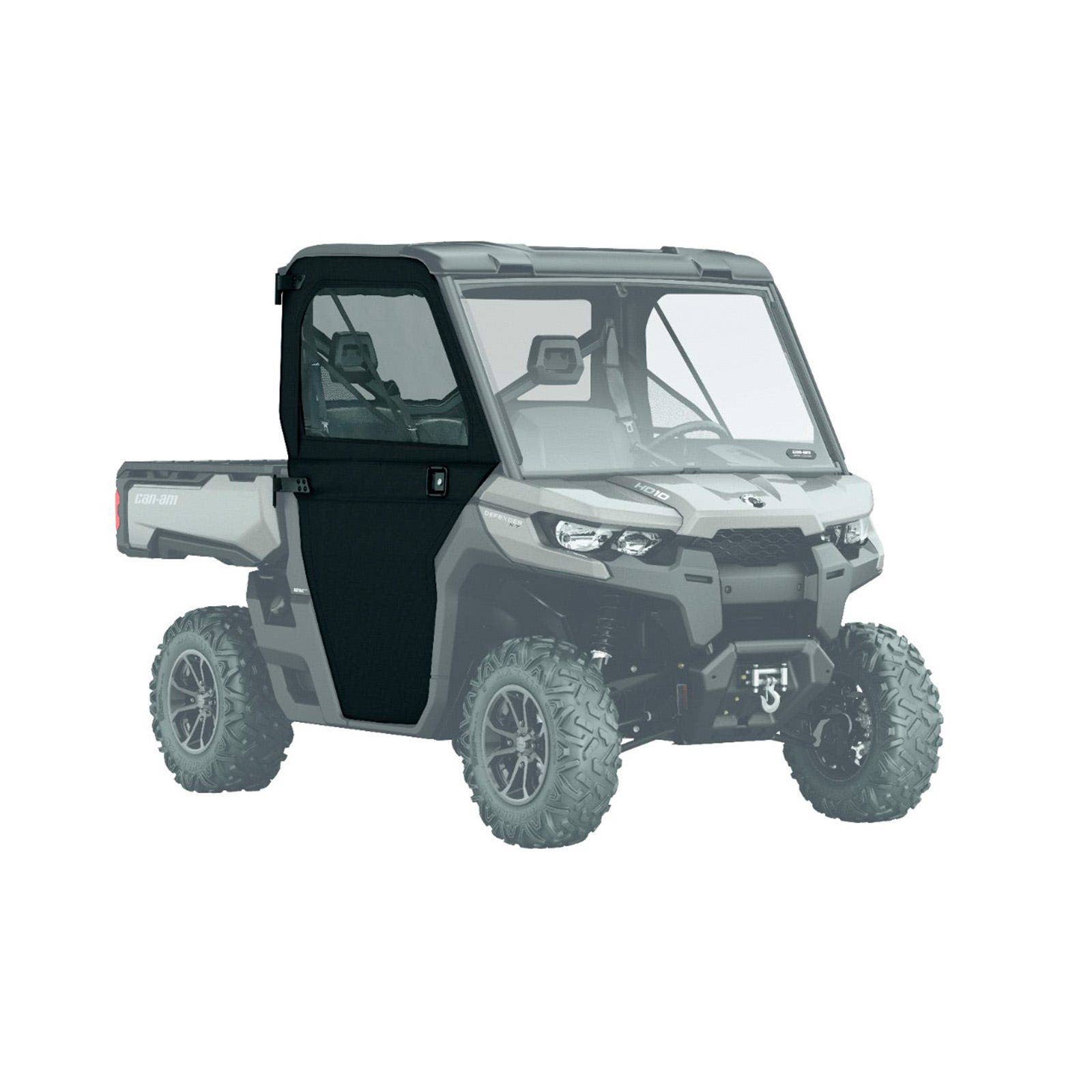 Weather-resistant and reinforced with a steel frame, our SxS Soft Doors offer good protection from the outside elements. Plus, these side-by-side doors are equipped with zip-down windows if you'd like to soak in the fun. With that, you get the freedom of unzipping the windows for extra ventilation or keeping them closed when you want a little more protection or privacy. They protect you from UV light and can be installed or removed in no time on hot sunny days. Get in and out of your ride in no time with the rear hinge and don't worry about tears or abrasions anymore. There’s nothing soft about these Soft Doors. Weather-resistant soft doors reinforced with steel frame offer good protection from the elements. Made of heavy-duty UV-resistant canvas for excellent resistance to tear and abrasion. Rear hinge wide opening for ease of ingress/egress. Zip-down windows made of laminated polished vinyl material for added ventilation. Quick and easy installation, and easily removable on hot sunny days. Compatible with BRP roofs and mirrors. Soft Door Installation Kit (715006238 / 2X for MAX) is required for installation of 2019 & prior doors, on 2020 Defender models.