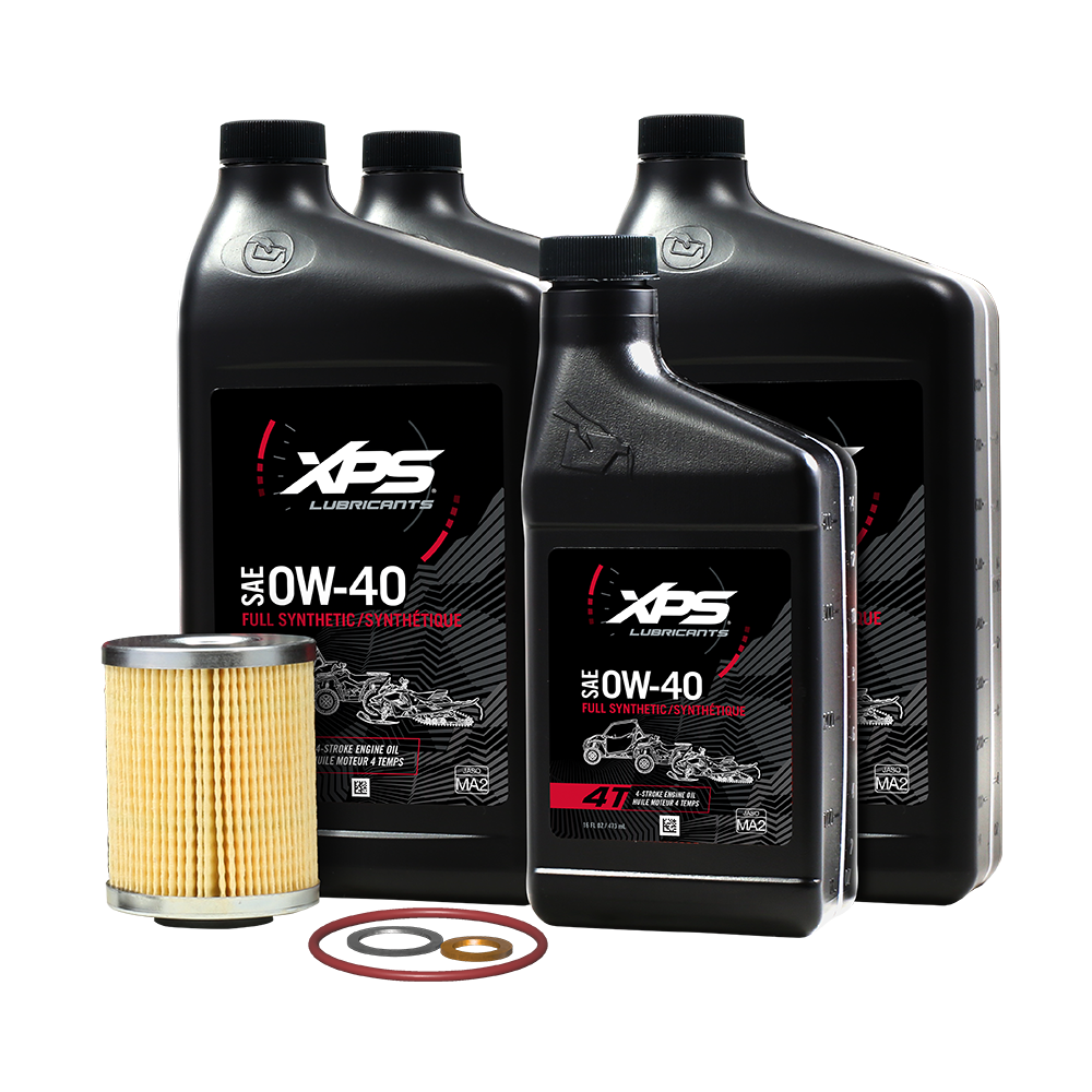 XPS oils are expertly engineered to perform in the harshest conditions and extend the life of your ride. No matter the size or type of BRP vehicle you have - XPS has you covered. Enjoy working on your ATV or SSV and like to get your hands dirty? Then try changing your own engine oil with the 4T 0W-40 Synthetic Oil Change Kit for Rotax 450 cc or less engine. The kit includes XPS Synthetic Oil, an oil filter, o-rings and a washer. Our XPS oils improve the performance of your Can-Am Off-Road vehicle and, when paired with your hard work, protect your engine better than other oils. Ultra-convenient “all-in-one” oil change kit saves time and money. Includes XPS Synthetic Oil, oil filter, o-rings and washer. Full Synthetic (0W-40 450 CC or less (except Rally and DS ATVs)