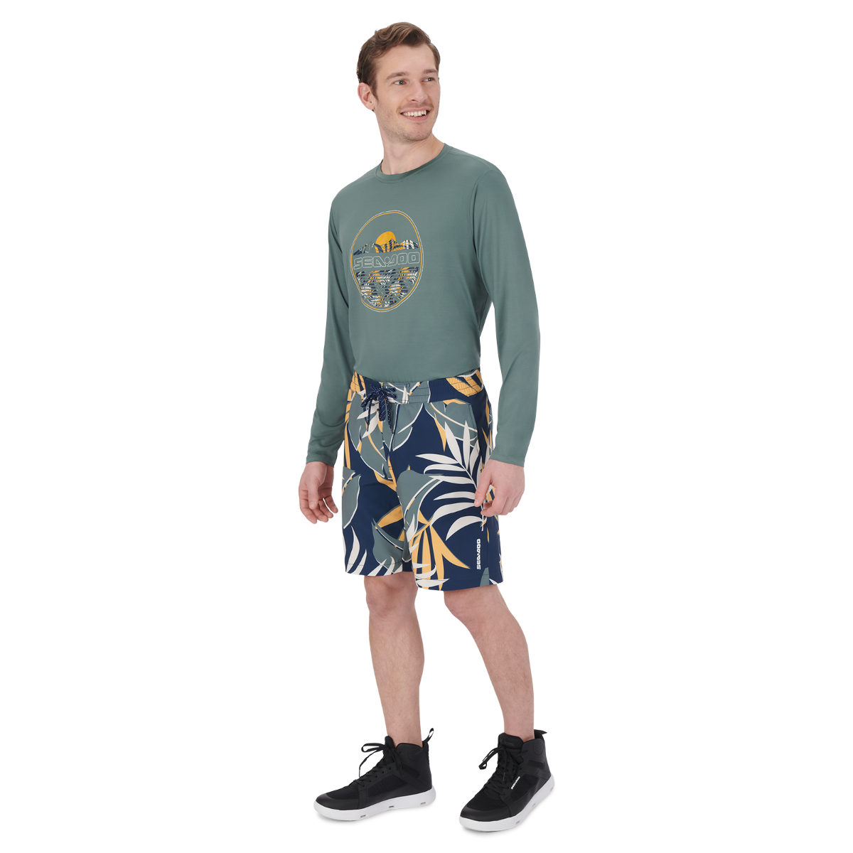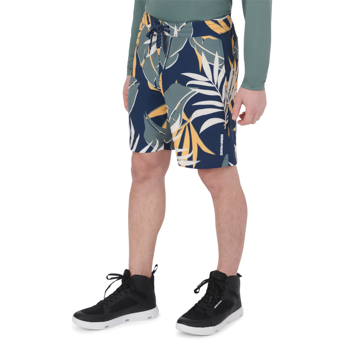 Take the plunge without fear of soaking, weighed down short when you sport the Men's 20" Classic Boardshort from Sea-Doo. A fabric blend of polyester and spandex gets a performance upgrade with a water-repellent coating and sun-shielding UPF 40 UV protection. Secure the fit with the lace-up front closure, while you use intelligent features like the back key loop and secure back zip pocket. 90% Polyester, 10% Spandex. Outseam: 20". Water-repellent coating. UV protection 40 UPF. Lace-up front closure. 2 hand pockets and 1 back zipped pocket. Key loop at back.