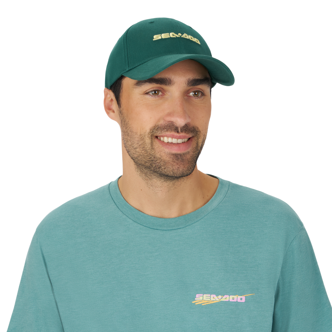 There's a reason why classic silhouettes remain favorites decade after decade. Such is the case for this Unisex Sea-Doo Signature Cap. Cotton construction ensures comfort, while the snap closure at the back is the key to a just-right fit. Sea-Doo logo branding front and center makes this old favorite feel new again. 100% Cotton. Snap-back closure Sea-Doo logo at center front.