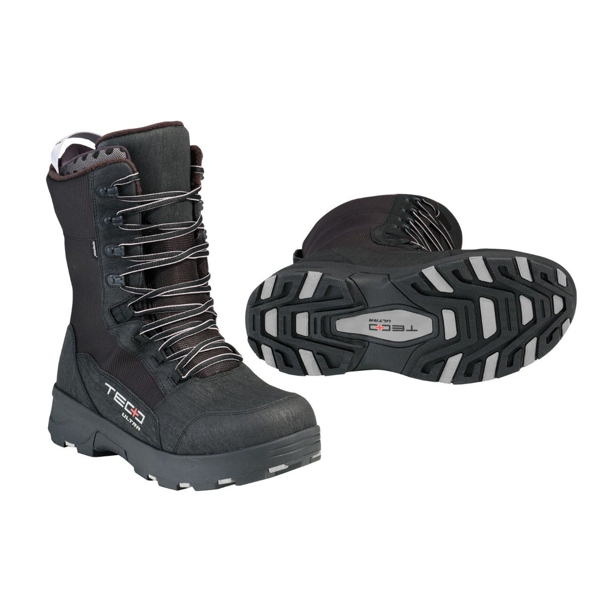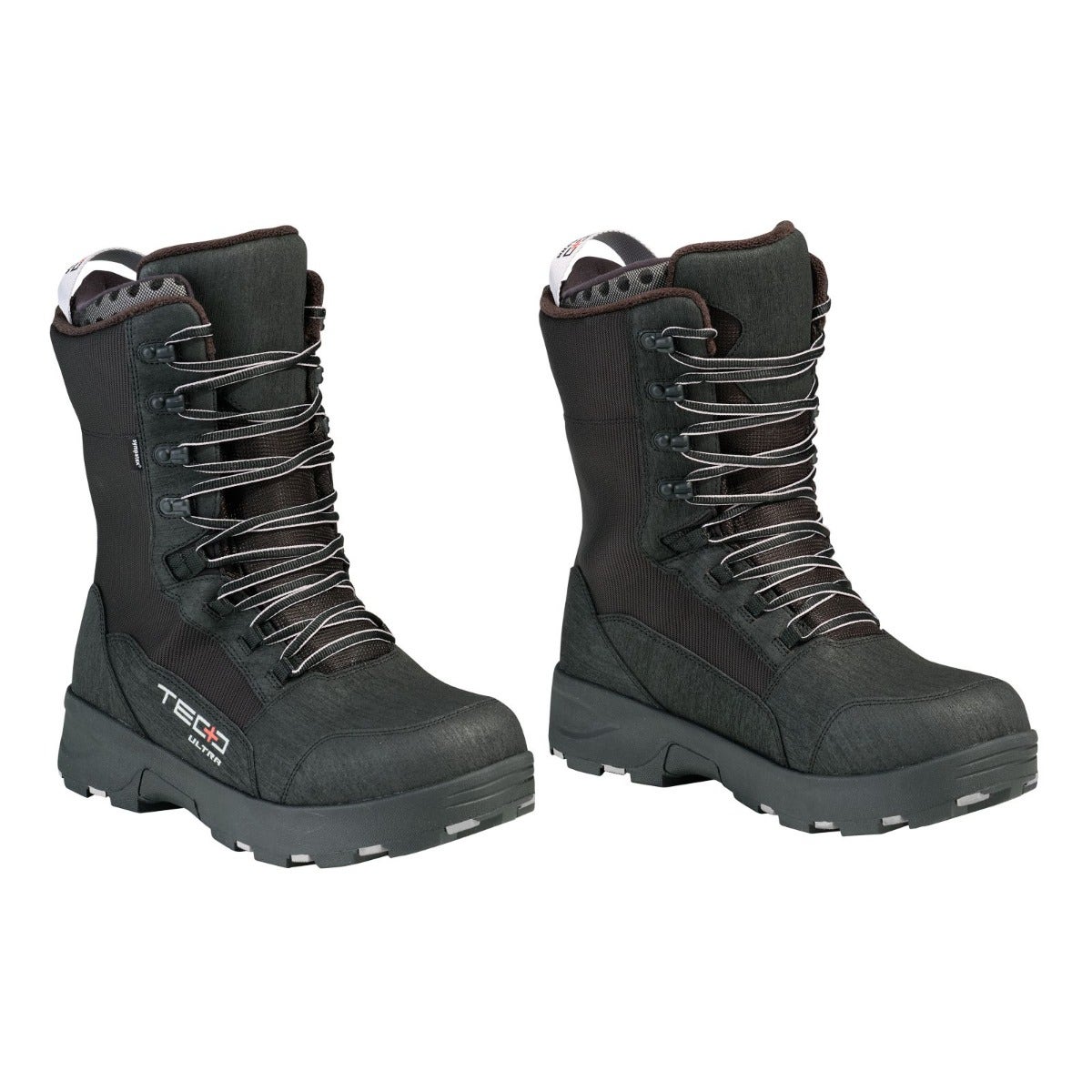 Stay warm riding at any speed with the Tec+ Ultra Boots. These Ski-Doo boots are made of durable abrasion-resistant leather and have ice-gripping soles to give you exceptional traction on and off the trails. Whether you’re riding through deep-snow or in sub-zero temperatures, our waterproof snowmobile boots featuring removable performance liners and a breathable Sympatex membrane will keep your feet warm and dry all day long. Tough abrasion resistant leather outer and textile. Sympatex breathable waterproof membrane. Performance liner that will provide warmth and added comfort by shaping to your foot. Limit of comfort temperature range: -58°F to -76°F or -50°C to -60°C. Rugged ultra-grip outsole design. Removable/inner liner.