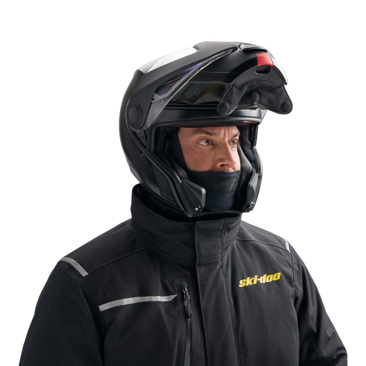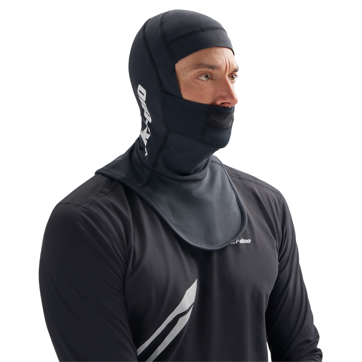 Match the Ski-Doo Breath Guard Mid Balaclava with our Advex Helmet, or any helmet with a breath guard, for the perfect solution to fogging. It’s the perfect fit—long enough at the front to keep the wind out, short enough at the back to keep from bulking up, and contoured to perfection so it stays in place during even your most envelope-pushing snowmobile rides. Polyester/ Spandex Mid weight Wicking properties Snag Resistant Back Brushed material Stretch bonding finition all around the face for extra comfort Long wind resistant front neck curtain to protect from air entry Shorter neck curtain at back to avoid bulkiness in jacket Chin coverage and back insert in stretch material for maximal comfort during the ride Breath box in mesh for perfect integration with Advex helmet Neck curtain laminated with waterproofness of 5000 mm and breathability 5000 g with PFAS Free Durable Water Resistant (DWR) Improved fit staying well in place when riding Offered in 2 sizes S/M and L/XL Ski-Doo logo at neck