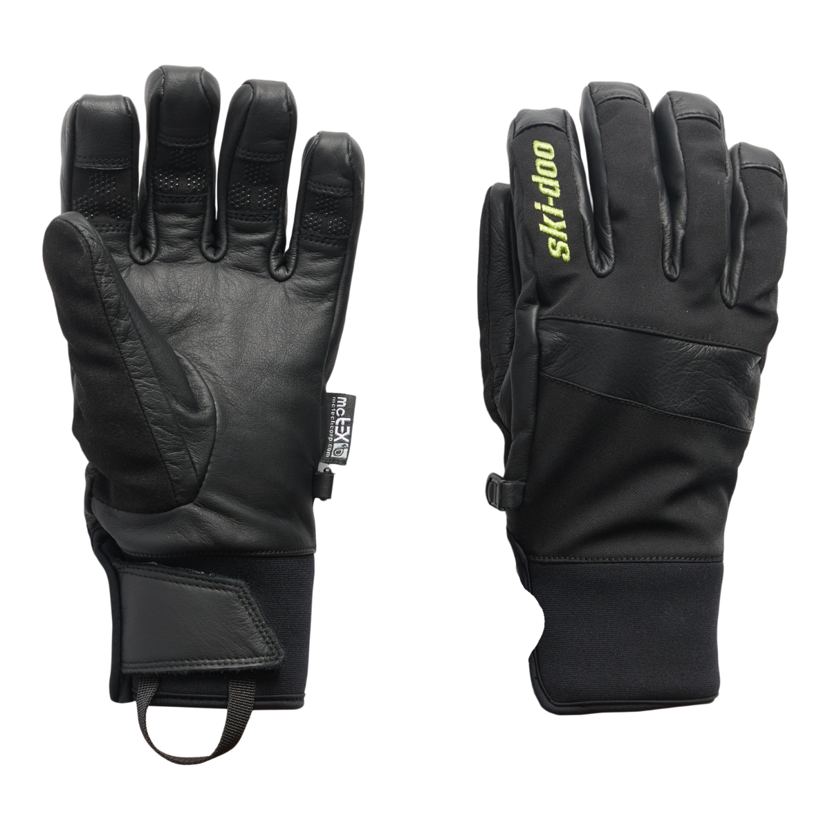 Take control of your ride with the Ski-Doo Grip Gloves, a high-performance insulated pair of handwear perfect for keeping you warm and protected on trail and deep snow rides. These gloves feature insulation of variable weight to offer warmth where you need it most, as well as a waterproof, windproof and breathable glove insert to keep the conditions at bay. Inside adhesive technology, rubber print at the fingers and a leather palm offer superior grip, dexterity and toughness, while fully shaped fingers and padded and reinforced palms ensure your hands remain comfortable all day long. Waterproof, windproof and breathable glove insert. Inside adhesive technology for a better grip control, added tactility and dexterity. Light insulation at backhand only (85 gr Primaloft Gold), for warmth without compromising grip. Print design on backhand to minimise snow accumulation. Rubber finger print for improved grip. Fully shaped fingers. Box fingertips to avoid air infiltration. Neoprene wrist with adjustment. Padded and reinforced palm. Leather palm construction for toughness. Suede at back thumb for lens wipe. Conductive leather at index.
