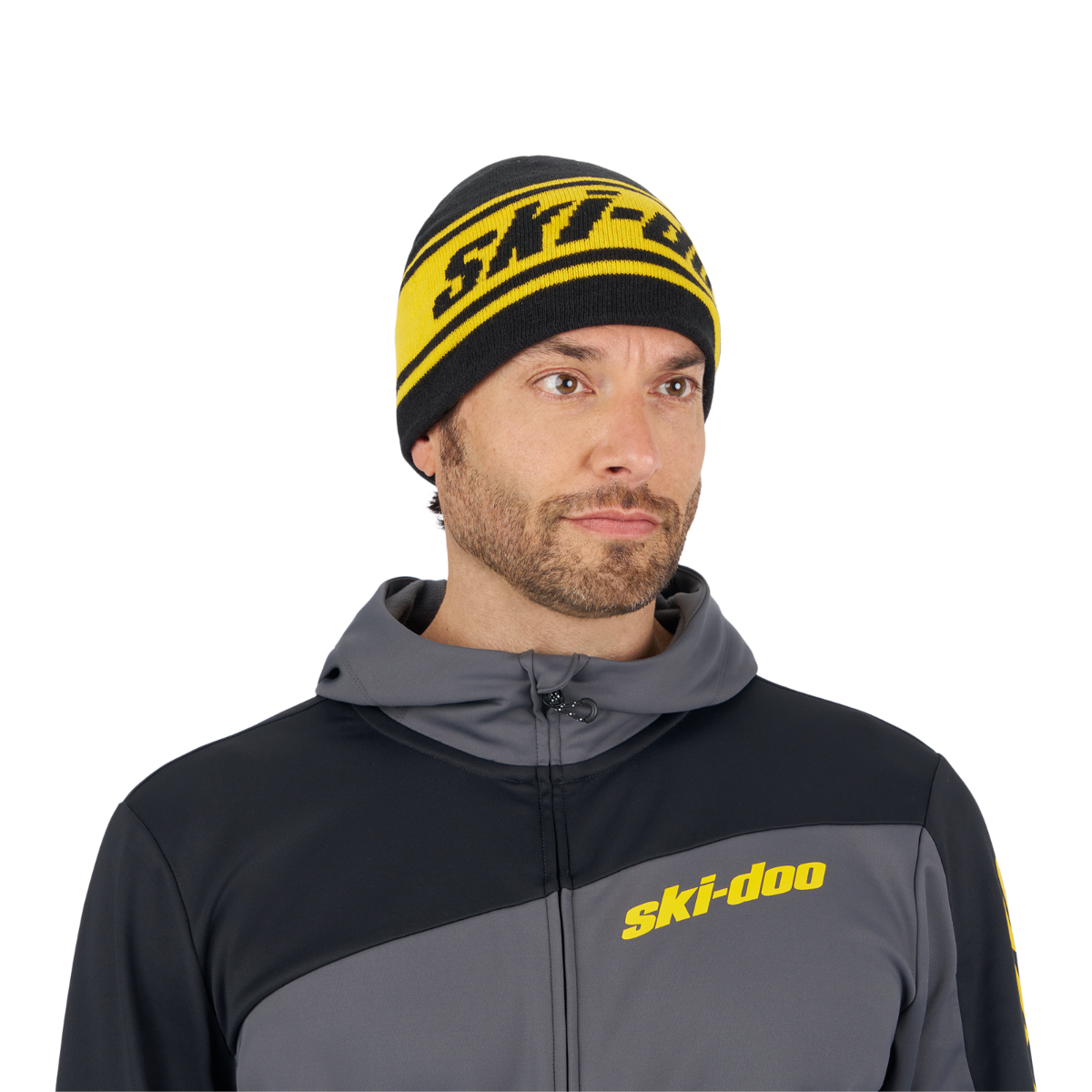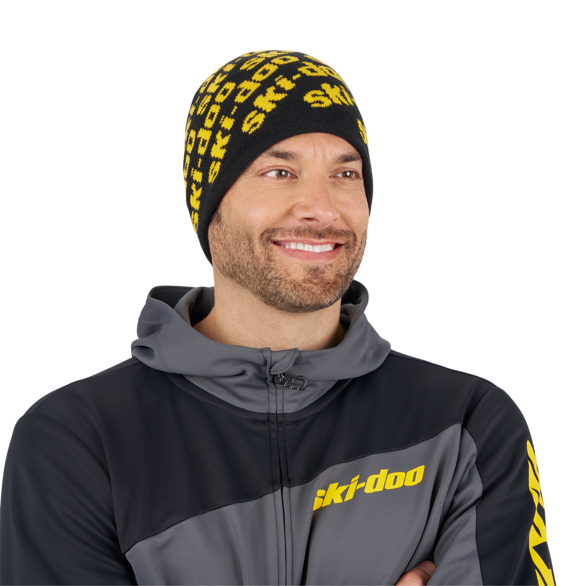Introducing the Reversible Ski-Doo Beanie Unisex, an essential piece of headwear for those who embrace the winter wilderness. Crafted from a blend of 95% acrylic, 4% nylon, and 1% spandex, this beanie offers the perfect balance of warmth and flexibility, ensuring a snug fit for every adventure. The knit-in logos proudly showcase your passion for Ski-Doo, making a bold statement whether you’re on the slopes or enjoying a cozy evening by the fire. With its reversible design, you can switch up your style while staying fiercely comfortable. Embrace the chill with confidence! 95% Acrylic, 4% Nylon,1% Spandex Knitted repetitive Ski-Doo logo on one side Knitted stripe and Ski-Doo logo on the other side
