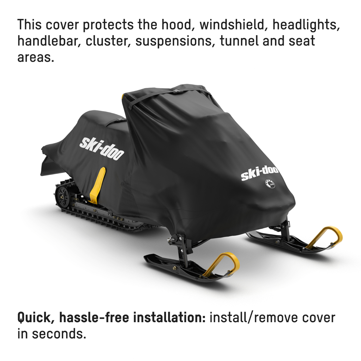 Introducing the Ski-Doo Snowmobile Cover for Youth, the ultimate shield for your young rider's sled. Designed to fit all youth model sleds, this cover is a must-have for every adventurous family. Featuring quick release buckles, it allows for effortless operation, even with gloved hands. The innovative RAP clip connects seamlessly to the tunnel, ensuring a hassle-free installation. Whether you're transporting the sled to the next snowy escapade or storing it away, this cover provides essential protection. Equip your young riders with the confidence they deserve on their winter journeys. Cover fits all youth model sleds. Quick release buckles for easy, gloved-hand operation. RAP clip intuitively connects to the tunnel for easy installation. Added protection while transporting sleds.