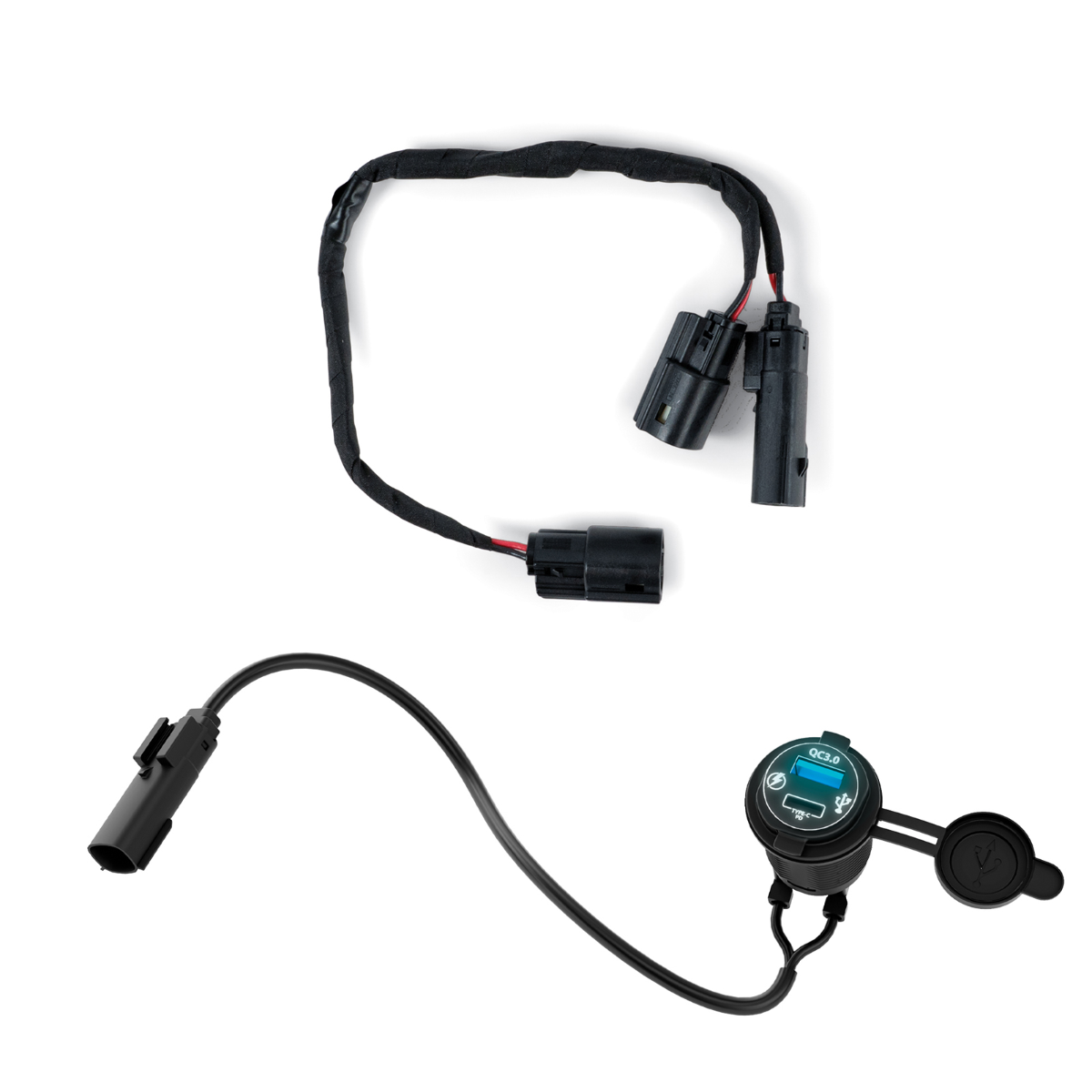 Introducing the USB Intelligent Power Outlet Kit, designed specifically for riders who demand power at their fingertips. This robust electrical accessory features a sleek design that installs seamlessly inside your storage compartment, keeping your ride clutter-free. With 1 USB-A 3.0 and 1 USB-C (PD) plug delivering a powerful 36 watts, you can charge all your electronics swiftly and efficiently. Equipped with an intelligent USB charger, it ensures your devices get a fast boost when the battery is running low. Embrace the thrill of the ride without compromising on connectivity—this kit is a must-have for every adventurer. Power all your electronics with this easy to mount USB plug. Provides 1 USB-A3.0 and 1 USB C (PD) plugs. Power rate : 36 watts. Intelligent USB charger for a fast charge when battery is low. Installs inside storage compartment. Includes wiring harness for installation on REV Gen5 models.