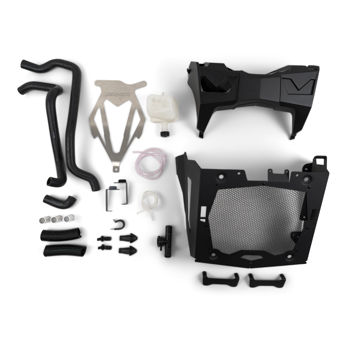 Want to enhance your ATV's cooling system? The Can-Am Radiator Relocation Kit is for you. Engineered to relocate the radiator to a top mount position, a Can-Am Outlander rad relocation kit caps? effectively prevents cooling performance loss in muddy conditions, ensuring your engine stays cool and reliable. The ATV radiator relocation kit caps? utilizes your existing radiator and includes all the necessary components for a seamless installation, including support, hardware, and hoses. Conquer challenging terrains with confidence with a Can-Am rad relocate caps? on, knowing your cooling system is protected and optimized. Relocates radiator to top mount position. Prevents cooling performance loss in muddy conditions. Uses existing radiator. Includes support, hardware and hoses. Engineered for easy cooling system bleeding and maintenance. Radiator not included.