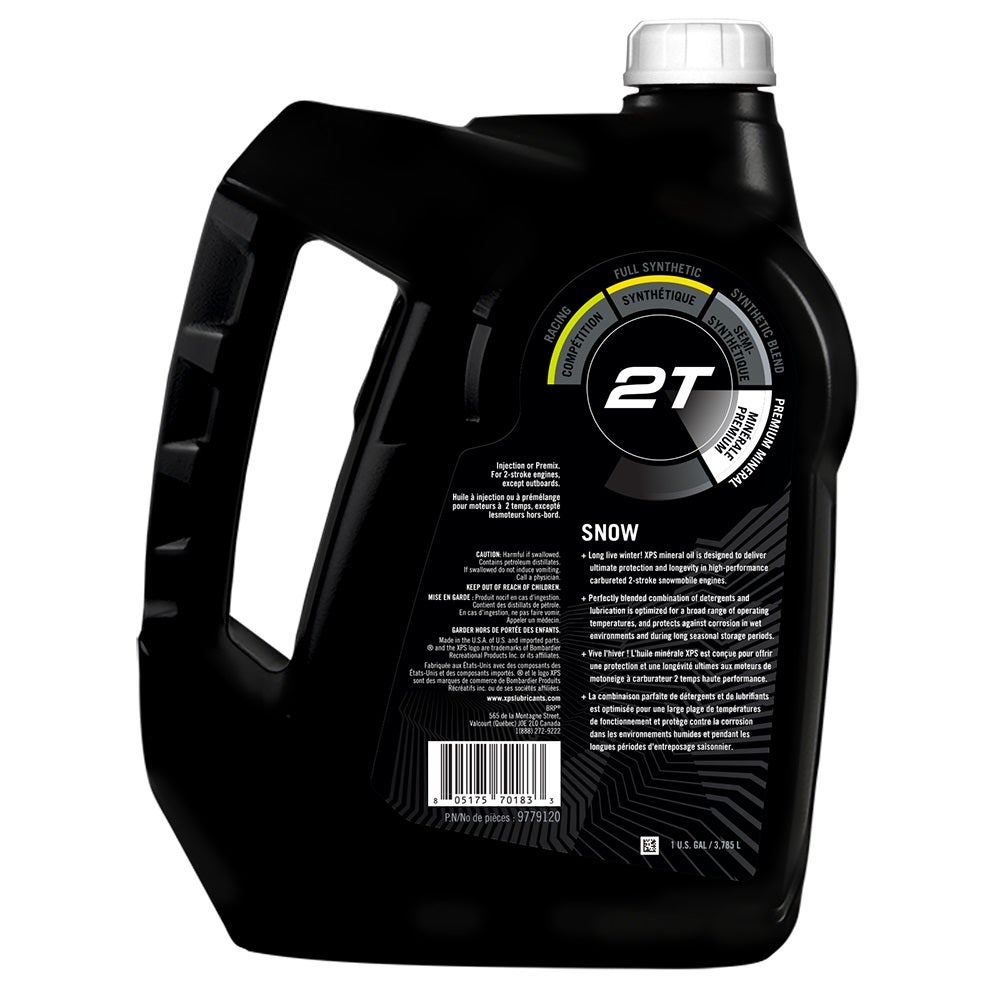 XPS oils are expertly engineered to perform in the harshest conditions and extend the life of your ride. No matter the size or type of BRP vehicle you have - XPS has you covered. Use XPS 2-stroke Premium Mineral engine oil to properly protect snowmobile carbureted 2-stroke engines. The carefully balanced additives optimize detergency and lubrication through a broad range of operating temperatures and adds additional corrosion protection for wet environments and to prevent corrosion during storage. 1 US gal / 3.785 L. Powersport formula with premium anti-wear and anti-corrosion additives. The carefully balanced additives optimize detergency and lubrication through a broad range of operating temperatures. Additional corrosion protection for wet environments and during storage. Safe for winter/snowmobile use.