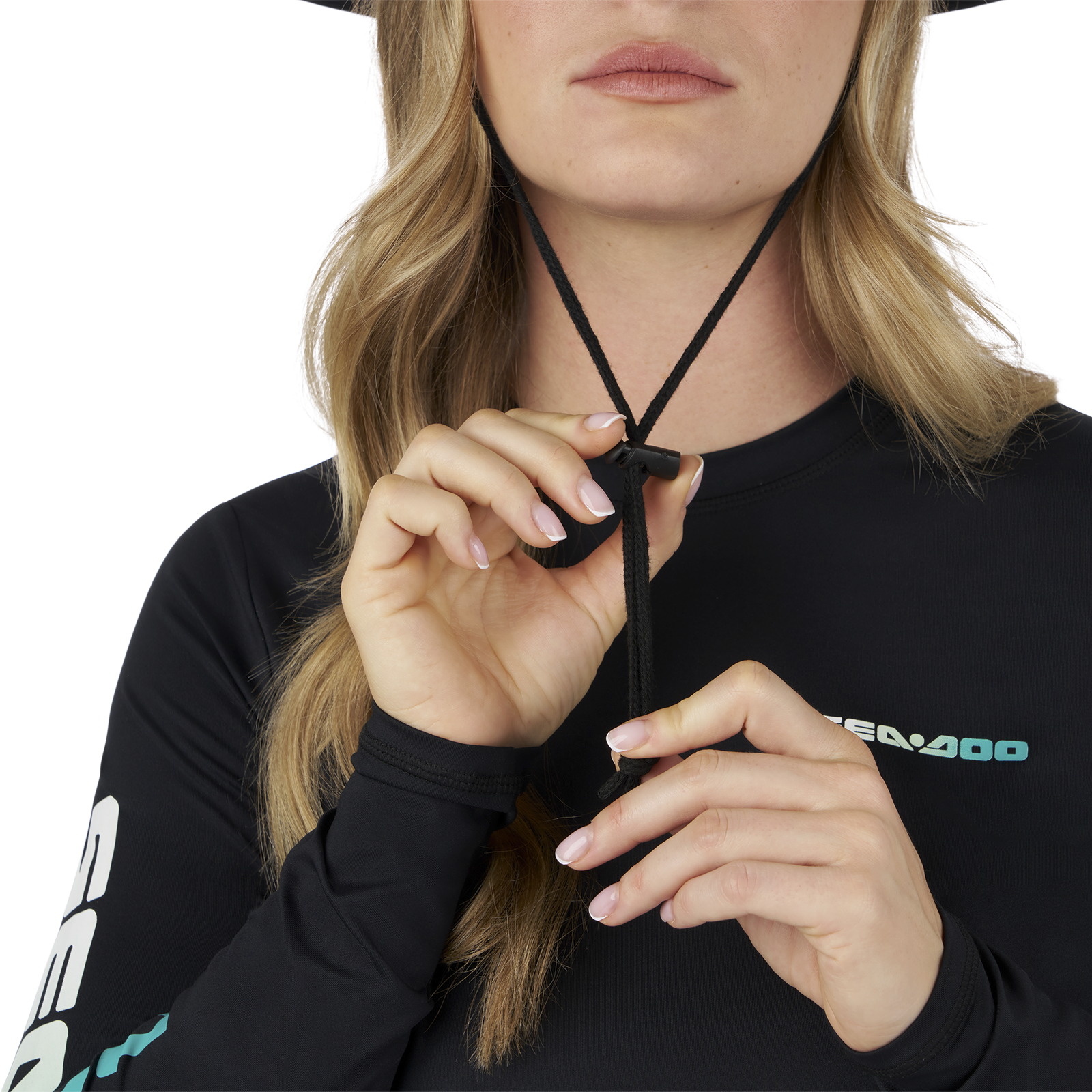 When the sun is beating down on you, fight back with the laid-back Sea-Doo Straw Hat. Don't let its easygoing vibe fool you—this hat is no match for sunny rays. Sea-Doo logo branding at the front adds sporty style, while the printed fabric at the brim adds comfort and an extra style hit. Plus, the adjustable chin strap ensures this sun hat isn't going anywhere. Sea-Doo logo at front. Printed fabric under brim.