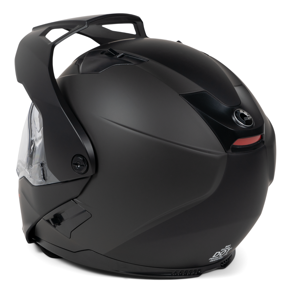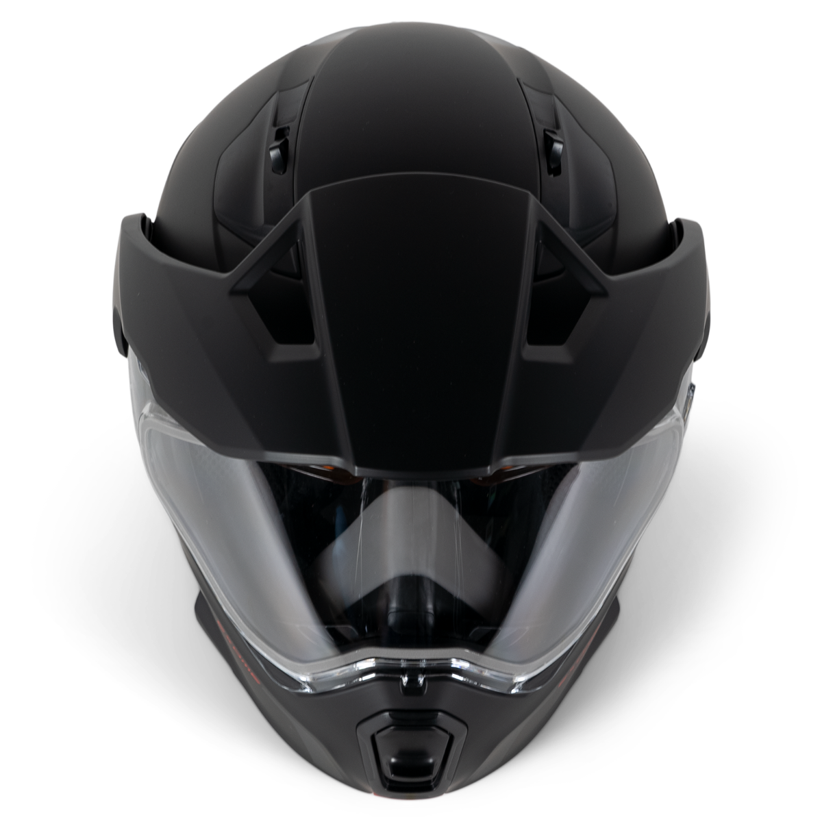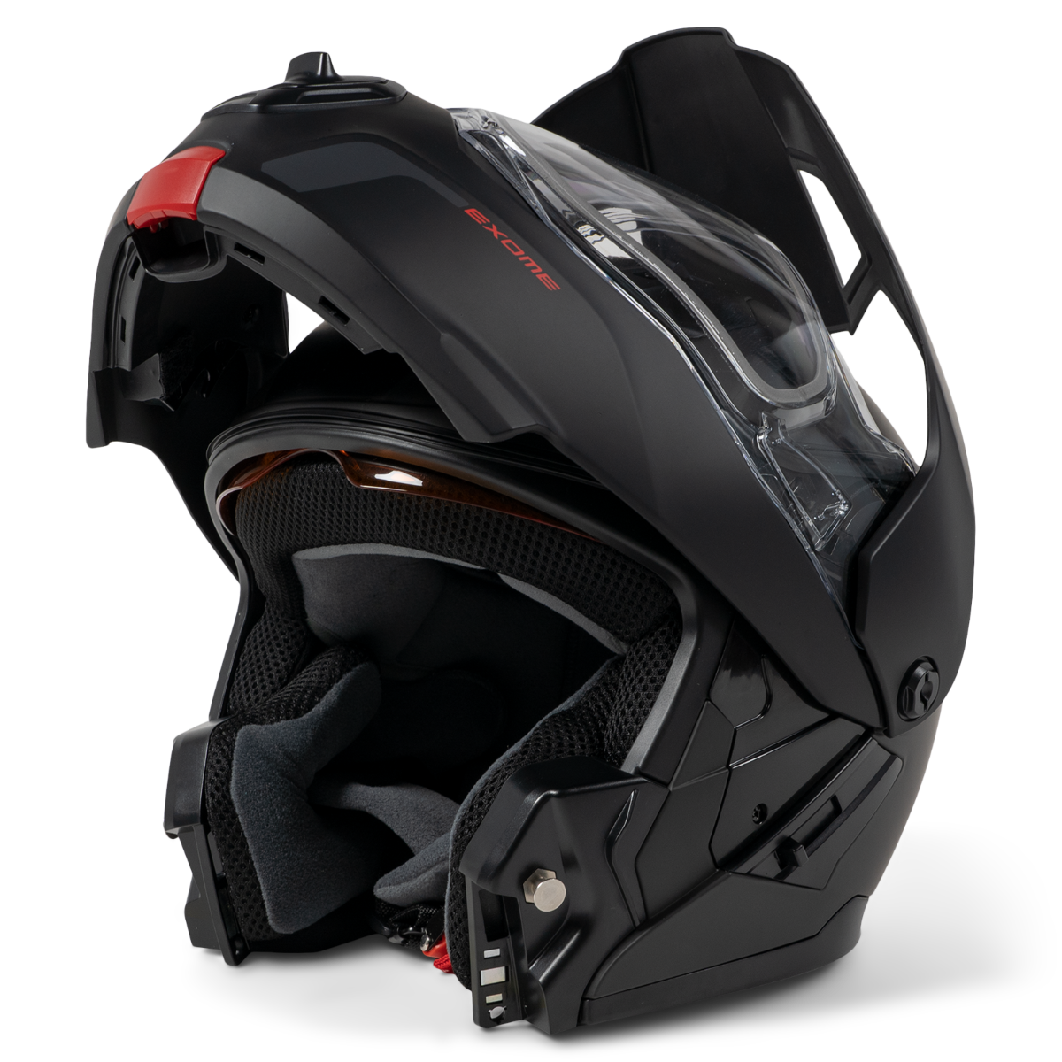 Rugged outdoor looks and high-tech protection combine in the Ski-Doo Exome Sport Helmet, a DOT-certified helmet that’ll keep you feeling confident and safe. A dual-lens anti-fog visor and Breath Evac fog-resistant mask system ensure your line of sight remains clear no matter what, while the fit is eyeglass-friendly. Those enhancements are standouts in a modular helmet that boasts an advanced plastic composite shell, a removable peak and a quick-release chin strap to accommodate easy on/off. Technology & Features Breath Evac System: Fog-resistant breathguard mask system. Vision & Eyewear Compatibility Field of Vision: Wide, unobstructed view. Visor: Dual lens anti-fog visor. Amber sun visor included for optimal vision in snowy conditions. Tinted and retractable sun visor. Eyewear: Compatible with prescription glasses. Lighting & Safety Certification: DOT approved. Environmental & Ergonomic Design Shell: Advanced Plastic shell for durability and minimal environmental impact. Fit & Sizing Fit: Helmet should be snug; it will break in and loosen slightly over time. Shell Sizes: Two shell sizes for optimal fit and comfort. Accessories: Includes 5 absorbent pads for the Breath Evac mask. Chin Strap: Quick-release system. Warranty Coverage: 4-year limited warranty.