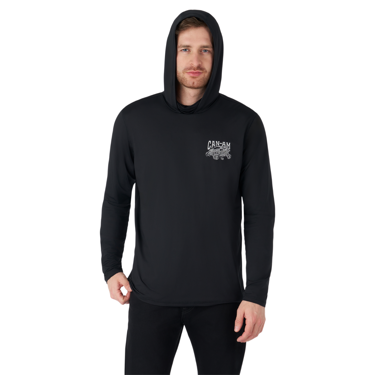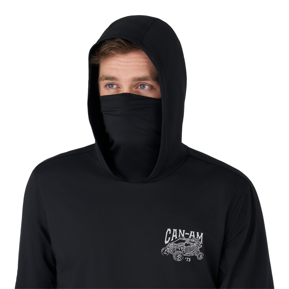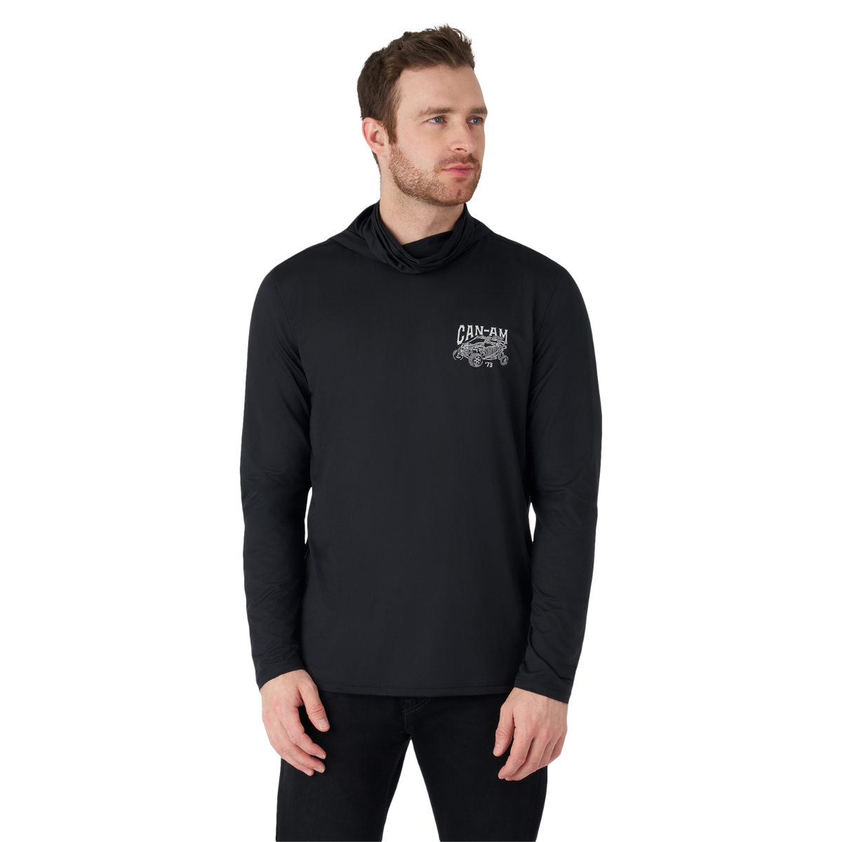 92% polyester, 8% spandex. 175 gsm. Loose fit. UV protection – 50 UPF. Quick dry. Built-in gaiter mask. Can-Am logo on the right sleeve and artwork at left chest.