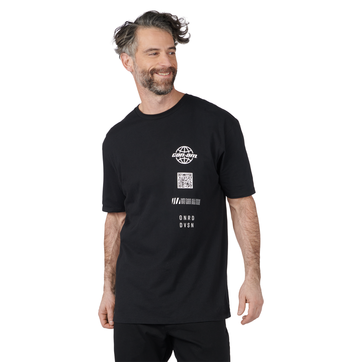 If you’d rather be on the open road, tell the world with the Men’s Can-Am Kyle T-Shirt. This soft cotton-blend tee is perfect for daily wear with its soft cotton feel, comfortable regular fit with crew neckline and print graphics at the chest and across the rear. Pair it with jeans, joggers or shorts for a classic casual look for work or play. Logos at front. Graphic artwork at back. QR code detail.