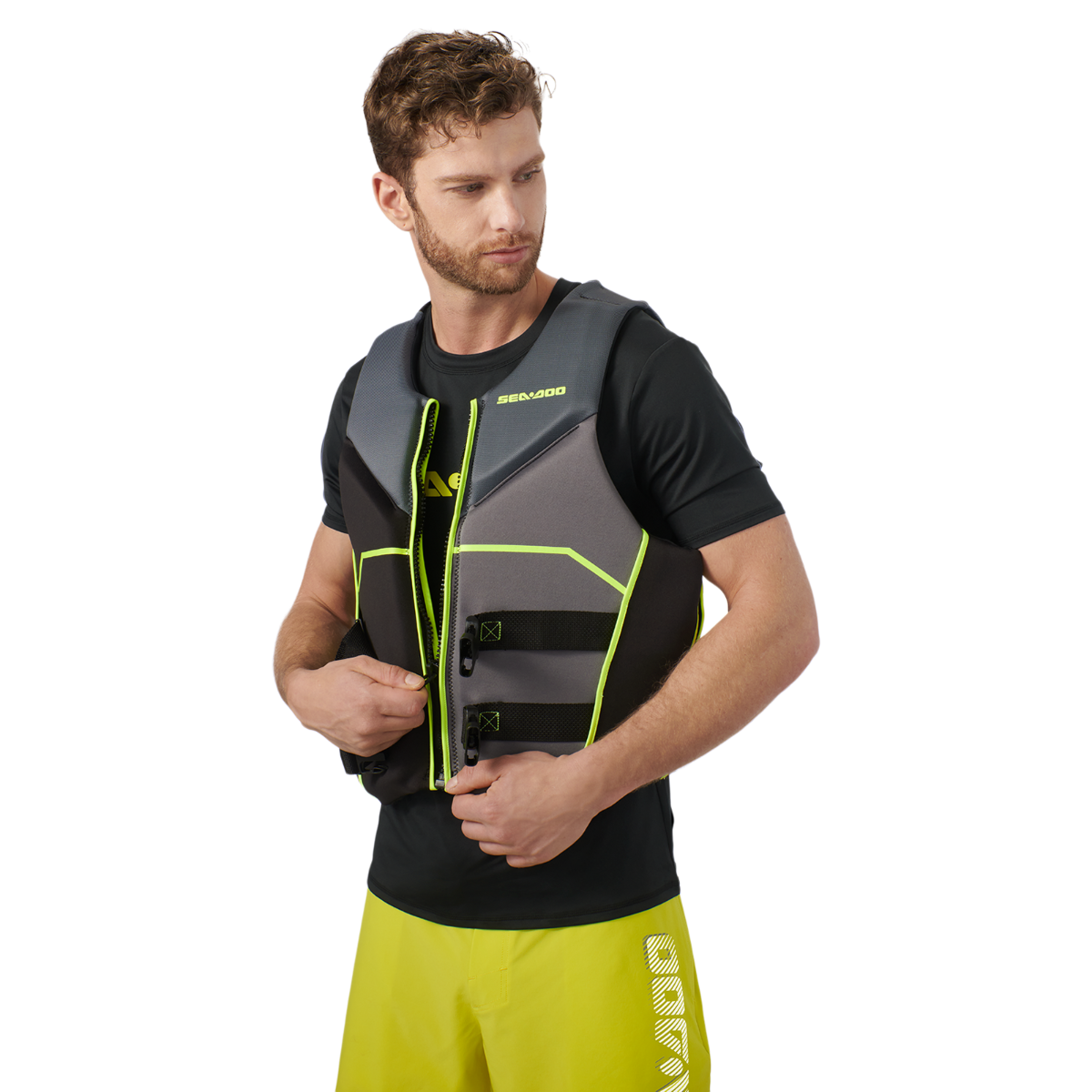Say hello to your independence from uncomfortable, cumbersome PFDs with the Sea-Doo Freedom PFD Life Jacket. Eco-conscious ecoprene material is made without rubber and designed to dry quickly without extra weight from the PVC and expandable Polyethylene insulation. Give your back an extra boost thanks to the extra foam padding in the lumbar comfort zone, which minimizes lower back pressure and adds support while you're sitting. Other key features include a quick-drying, water draining mesh panel, YKK front zipper, large-cut armholes for maximum range of motion, and stretch side panels. Grab this Coast Guard-approved PFD for your next water adventure. The sizes shown on this page are men's sizes. Environmentally friendly ecoprene material that is rubber free, flexible, lightweight, breathable and quick dry. Combination of PVC and polyethylene foam inserts. LUMBAR COMFORT ZONE: Extra foam padding to minimize the pressure on your lower back while bolstering support. MESH PANEL: Drain away excess water for quick drying and thermal regulated comfort. Comfortable fit. YKK front zipper. Segmentations at front and back for better comfort and ease of movement. Side panels in stretch lining fabric for improved comfort. Armholes cut large for riding comfort. Loop at back neck to attach your goggles to your vest. D-ring for key lanyard. Coast Guard approved. Shell: 100% Polyester Insulation: 50% PVC, 50% Expandable Polyethylene