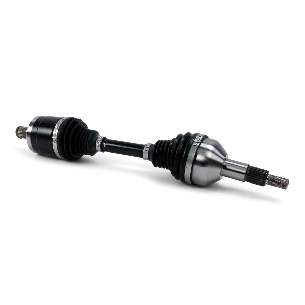 Genuine Can-Am axles perfectly match drivetrain, steering, and suspension geometries to reduce steering effort, premature wear, and unwanted loads on components such as ball joints, bushings, tie-rods, and bearings. Every Can-Am axle incorporates CV joints and bar shafts built with high grade heat-treated commercial steel, with internal components produced to precise high-tolerance standards and surface finishes, all of which combine to reduce stress concentration, mechanical resistance, friction, and heat, while increasing fatigue resistance and overall strength. Both inner and outer CV joints are packed with high-quality, name brand grease specifically designed for extreme high and low temperature applications, and for joints subjected to high mechanical and thermal loads. Keeping the grease in place and protecting both joints are CV boots made from TPE, a puncture and wear resistant polymer offering far greater durability than a rubber counterpart. Holding both boots in place are wide, high-quality Oetiker clamps designed for the perfect seal. These features combine for optimal durability and temperature resistance. Can Am axles do more than just transmit power. They function as pressure points in the power delivery system, absorbing stress to help protect more complex and costly components. No weak links. Just smart engineering. This Can-Am Genuine replacement axle includes the following components and features: Inner and outer CV joints built from high grade heat-treated commercial steel, incorporating internal components produced to high tolerance standards, with machined and polished surface finishes. Chromium and molybdenum alloy steel bar shaft. Puncture and temperature resistant TPE CV boots protect both CV joints and are held in place with high-quality Oetiker clamps. Name brand friction and heat reducing grease packed in both joints. No break-in required. Precisely matched to drivetrain, steering, and suspension geometries. Carefully engineered thresholds designed to help protect more complex and costly components. No weak links. Just smart engineering.