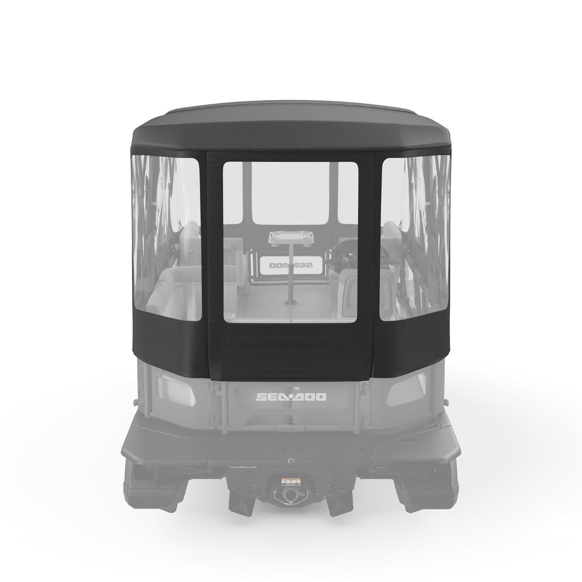 Discover the ultimate solution for outdoor living on the water with the Sea-Doo Switch Camper Enclosure. It provides full protection from weather, bugs, and other elements, helps you extend your boating season and enjoy nature's beauty without compromise. One of the standout features of this 21-foot camper cover is its unmatched field of view: immerse yourself in the surroundings while staying comfortably sheltered. Setup is a breeze, too: with clear instructions and a user-friendly design, effortlessly transform your boat into a cozy retreat in no time thanks to a Boat Camper Top. Add full protection from weather, bugs and other elements. Full field of view when in use is unmatched in the marine industry. Next-level innovation offers exceptional ease of use. Labelled installation sections eliminates guesswork during assembly. Bug netting defends against insects while allowing air flow. Under-roof pockets cleverly store canvas and panels when not in use. Dual magnetic and zippered closure system keeps door closed even when unzipped. Railing clip system provides effortless installation without the use of hard snaps. Requires the Double Bimini Top (295100962) for installation (sold separately).