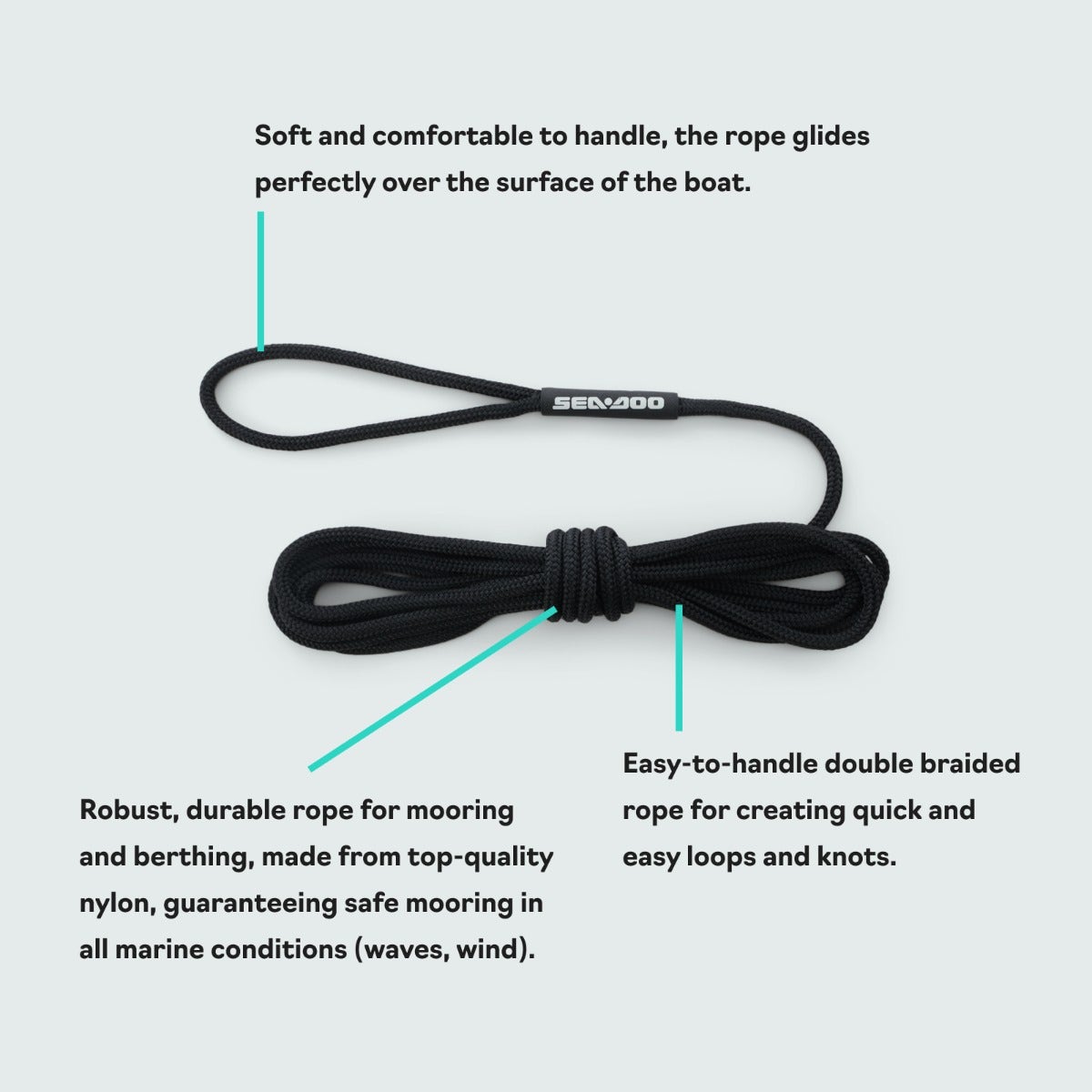 This 25-foot shock-cushioned nylon rope is designed for durability and strength, ensuring a safe and reliable mooring experience every time. Say goodbye to worries and hello to smooth docking with this essential boating tool. Trust Sea-Doo to keep your water adventures carefree and enjoyable. Shock cushioned nylon rope ideal for mooring your Switch. 25-foot length. High durable, high strength.