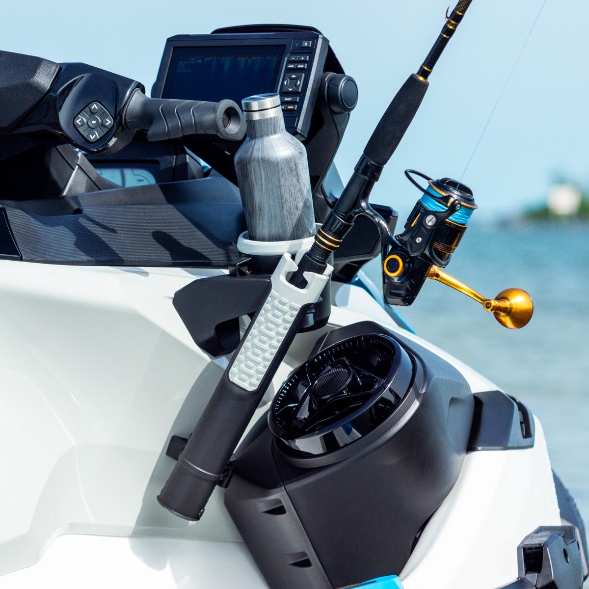 Enhance your water adventure with the Sea-Doo LinQ Cup Holder. Designed to meet your beverage needs, this versatile accessory is equipped with flexible fins that adjust to accommodate various beverage containers. No more worries about finding the right fit! Whether you prefer a can, bottle, or cup, this Pontoon cup holder replacement has you covered. Keep your favorite drink within reach during your watercraft excursions with a Sea-Doo drink holder. Whether you're cruising on a Sea-Doo or relaxing on a pontoon, you can quench your thirst without interrupting the fun. Keep your beverage within reach no matter where you're sitting on your vehicle. Cup holder fits most beverage containers thanks to flexible fins that adjust to size of beverage. Can be installed on the 13.5 US Gal (51L) cooler or on the Cup and Rod holder front supports. Tool-less installation, easy to move from place to place. No permanent installation point means you're free to move it almost anywhere. Sold single.