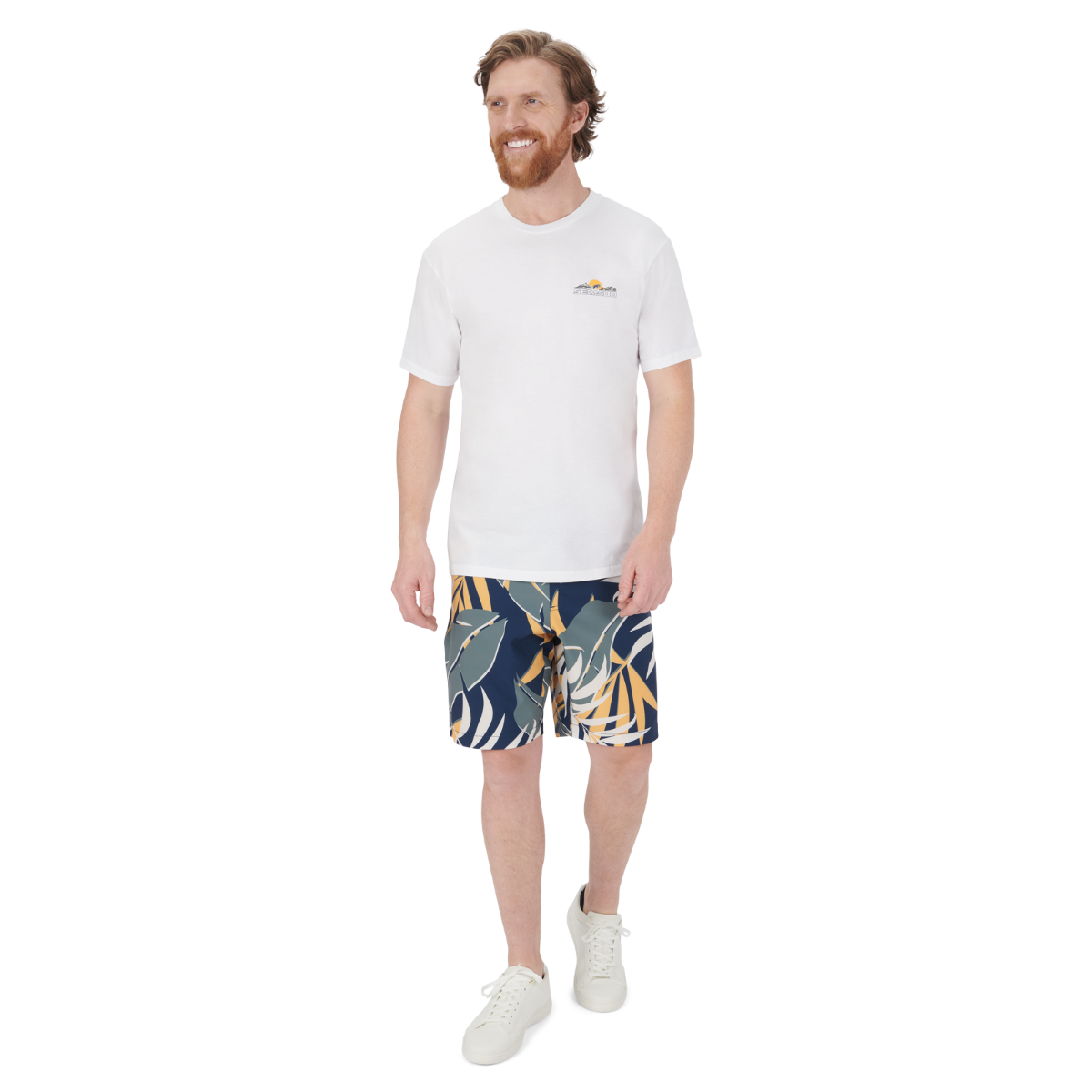 Bring the island vibes with you wherever you go with the Men's Tropical T-Shirt. Crafted from pure cotton for superior quality and breathability, this everyday tee is all about the striking artwork on at the back, which will have you dreaming of white sand and palm trees. The collar is strengthened with ribbing to ensure durability, making this tropical tee one you'll want to reach for again and again. 100% Coton. Rib collar. Artwork at left chest and at back.