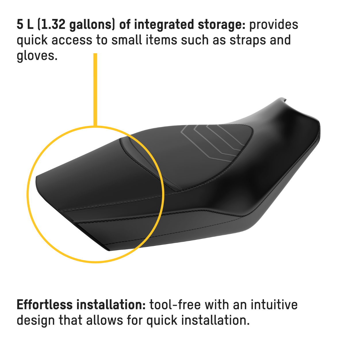 This robust body frame accessory is designed to provide unparalleled support and comfort, featuring a wider cushion that cradles your hips for those long rides. The integrated rear storage ensures you have ample space for essentials, keeping your adventure organized. Please note, specific battery covers and seat posts are required for installation based on your REV Gen4 model. Elevate your ride with this fearless addition that promises both functionality and comfort on the snow! Provides additional support and length. Provides additional hip support via wider cushion design. Integrated rear storage. Battery cover with support (860201720) required for REV Gen4 (Narrow) without battery. Battery cover (511001210) required for REV Gen4 (Narrow) with battery. 2 Summit seat posts (510006693) required for installation on REV Gen4 (Narrow) Summit 2020 and prior. 2 seat post (510007122) required for installation on REV Gen4 (Narrow) Summit and all Sport models, 2021 and up. Not compatible with Battery Cover (860201407).