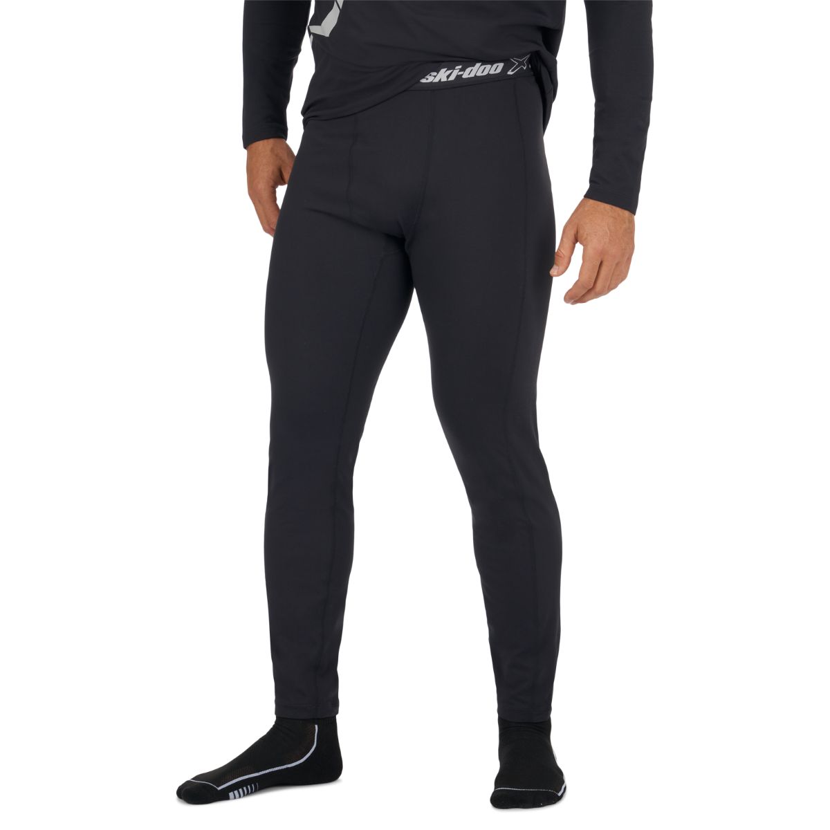 Discover the Men's X-Team Base Layer Bottom from Ski-Doo, your ultimate companion for conquering the cold. Crafted from a blend of 88% high-filament polyester and 12% spandex, this brushed fabric not only offers exceptional softness but also delivers remarkable warmth. Designed for the fearless rider, it features antimicrobial properties that keep you fresh during those exhilarating adventures. Whether you're shredding through powder or navigating icy trails, this base layer is the trusted choice for snowmobile enthusiasts seeking comfort and performance without compromise. Embrace the chill and ride boldly! 88% polyester, 12% spandex, 220GSM Made of high-filament polyester enhanced by slight brushing to provide softness and warmth Antimicrobial treatment Improved fit Jacquard Ski-Doo X-Team elastic Soft vertical plastisol Ski-Doo print on bottom right leg Easy access pocket on the right leg No front crotch seam for more comfort