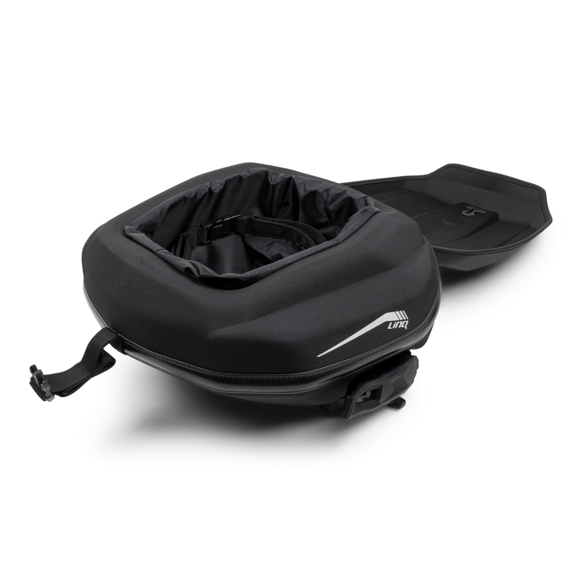 The LinQ 5.5 Gal (21 L) Semi-Rigid Bag is a must-have accessory for your adventure. This semi-rigid expandable bag boasts a generous 21-liter capacity, designed to keep your gear secure while on the move. With its innovative quick and tool-less LinQ installation, you can effortlessly attach or detach the bag as needed. Perfectly compatible with the Spyder RT LinQ Rack (219400973), this cargo solution is as bold as your spirit. Whether you're hitting the trails or cruising the open road, the SR LinQ Bag ensures you're always ready for the next thrill. Semi-rigid expandable LinQ Tunnel Bag offers a roomy 21 L (5.5 gal.) capacity with convenient quick & easy tool-less LinQ installation and removal. Dimensions: 41,6 cm L x 45,5 cm W x 22,4 cm H Spyder RT : LinQ Rack (219400973) required for installation.