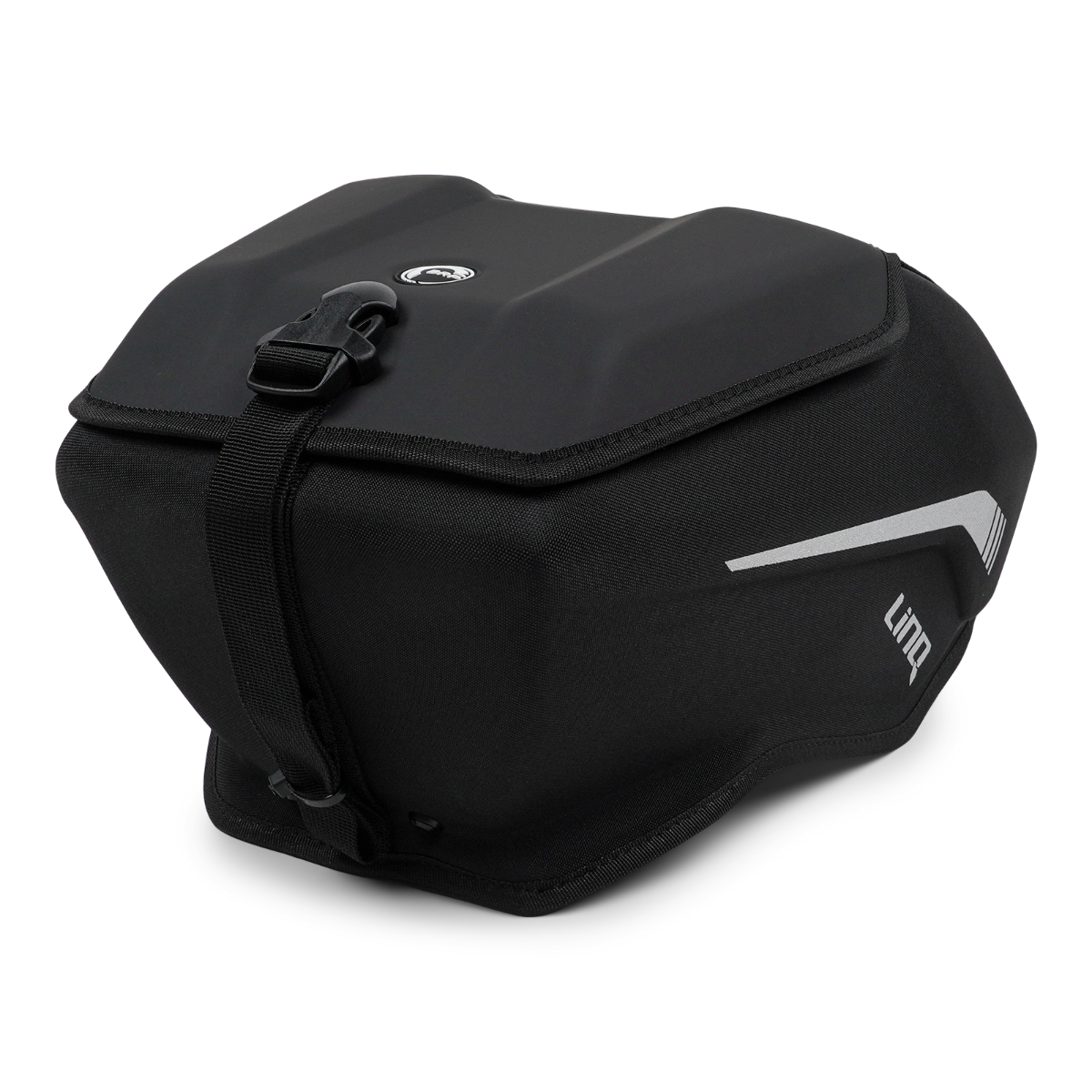 The perfect Ski-Doo trail seat bag is here! Gear up for epic snowmobile trail rides with our LinQ Trail Seat Bag (11 L). Offering a generous capacity (equivalent to 2.9 US gallons or 671 cubic inches), this snowmobile trail seat bag is designed to keep your essentials secure and easily accessible. A thermoformed hard plastic base along with the semi-rigid sides and top provide a sturdy home for your gear. Whether you need to carry extra layers, tools, or snacks, it's the ideal companion for riders who crave adventure and carry gear wherever they go! 11-liter (2.9 US gallons, 671 cu in) capacity. Thermoformed hard plastic base, semi-rigid sides and top. Vehicles with pull start require the Battery Cover (860201407).