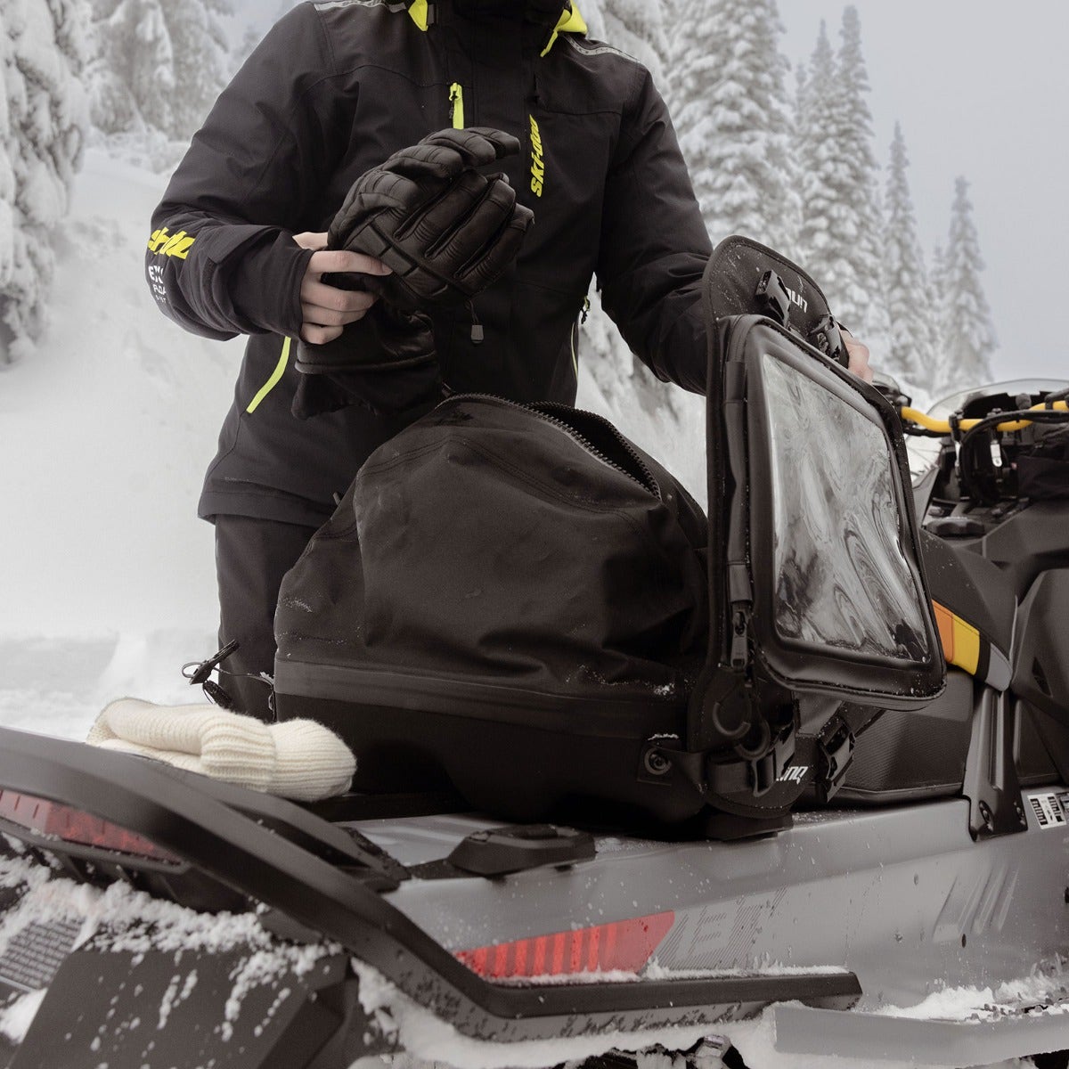 Experience the ultimate in snowmobile trail storage with the LinQ Trail Pro Bag (30 L). Designed to enhance your riding experience, this premium bag boasts our highest level of waterproofing thanks to its watertight zipper (TiZip). To explore new trails or embark on a familiar route, this Ski-Doo snowmobile trail bag's map holder and quick access storage provide convenient organization for your essentials. Need quick access to smaller items? The mesh pocket under the lid offers easy retrieval. With a brightly colored interior, locating your gear becomes a breeze, even in low-light conditions. Premium bag with our highest level of waterproofing. Watertight zipper (TiZip) Map holder & quick access storage compartment on lid Mesh pocket under the lid for easy, quick access to smaller items Brightly colored interior makes locating items easier Lightweight and mounts securely using one set of LinQ anchors. Expandable 9 to 30 L (2 - 6 US gallon, 550 - 1 831 cu in) capacity. Requires LinQ Cargo Base Kit (860201806) for installation on REV Gen4 16'' tunnels (2021 and prior) and Skandic Sport, and stackable LinQ accessories. Requires LinQ Cargo Base Kit (860202482) for installation on REV Gen4 20'' & 24'' tunnels (2022 and prior), except Skandic Sport.