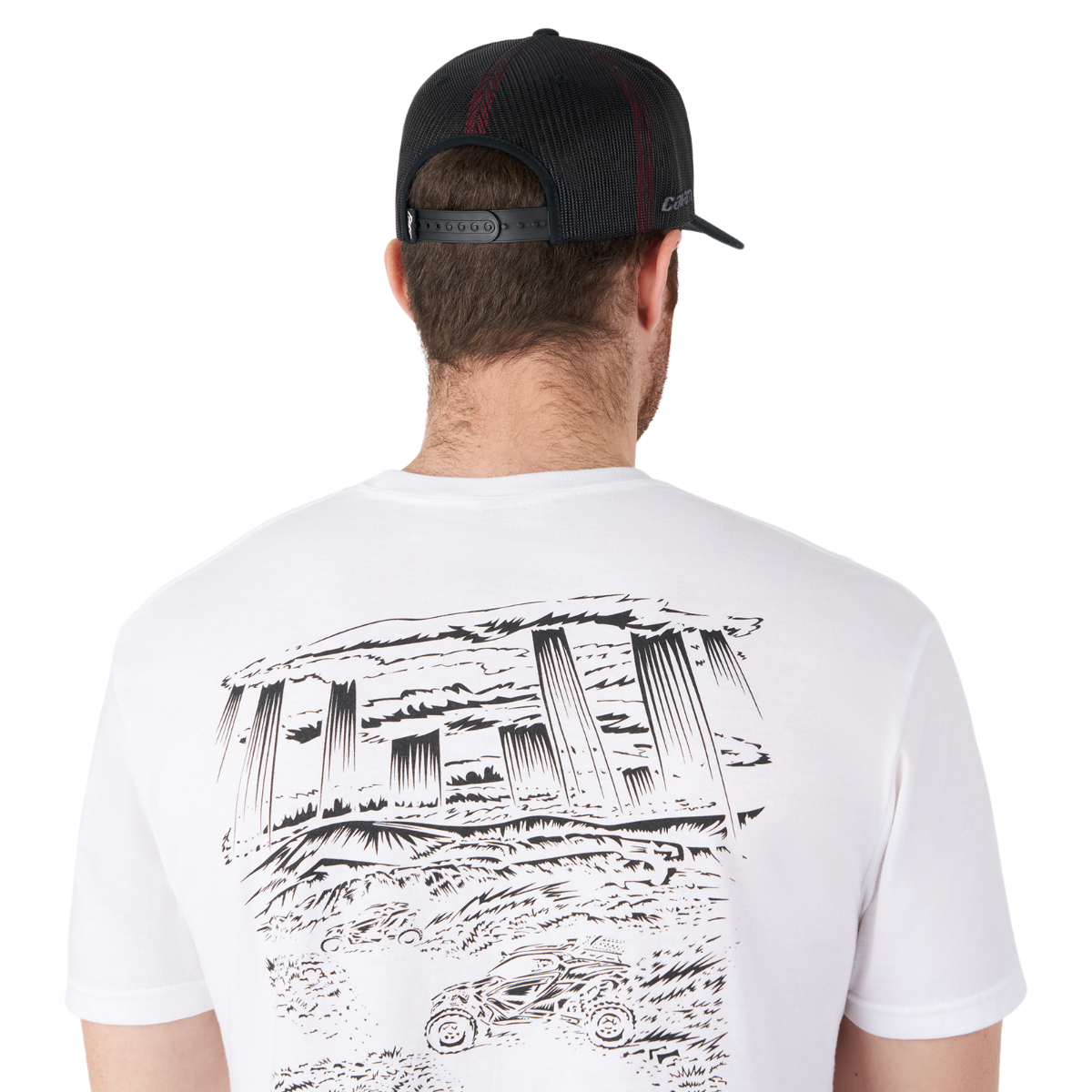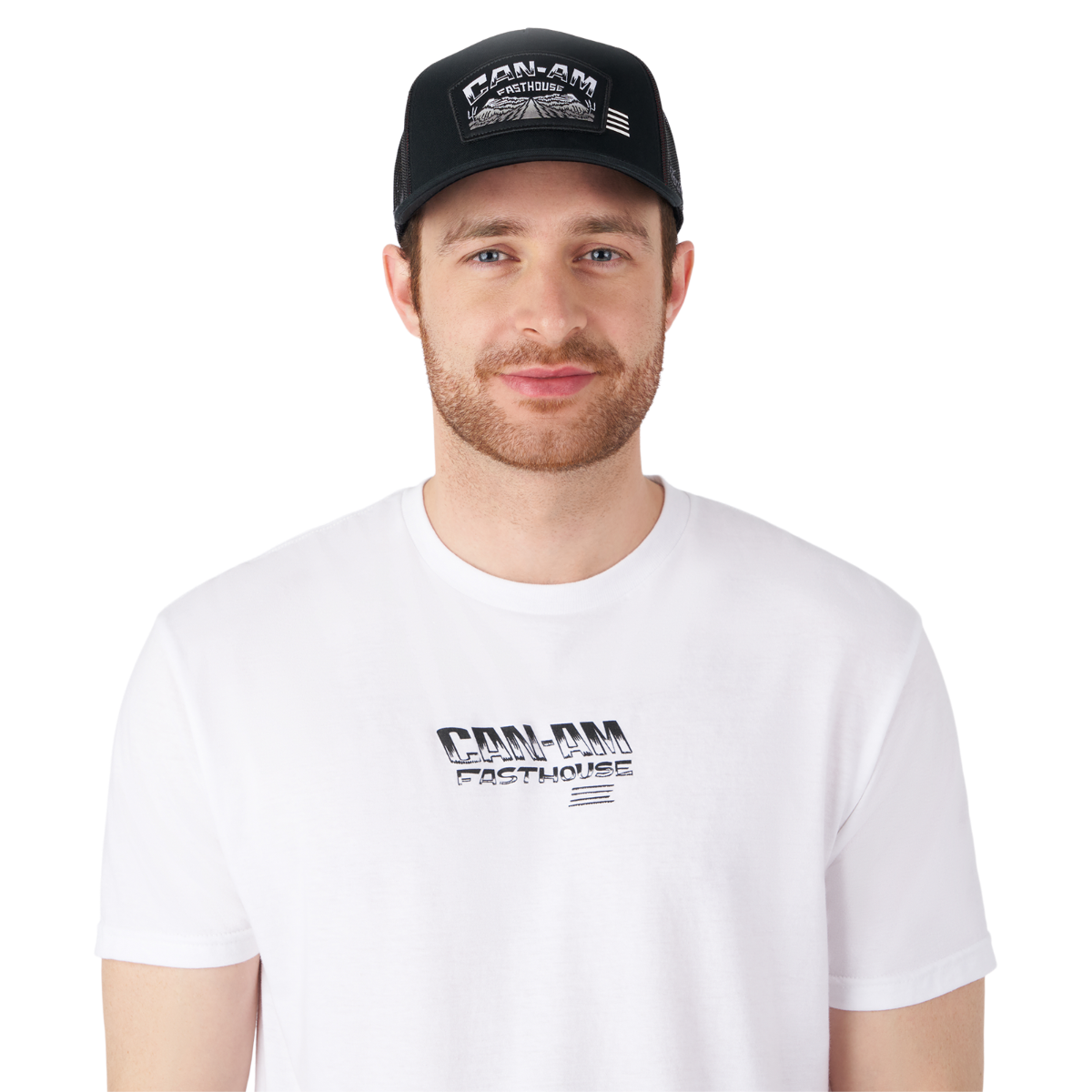 100 % cotton 5-panel Construction Curved brim. Woven patch at front. Branded taping & flag label. Snapback closure at back.