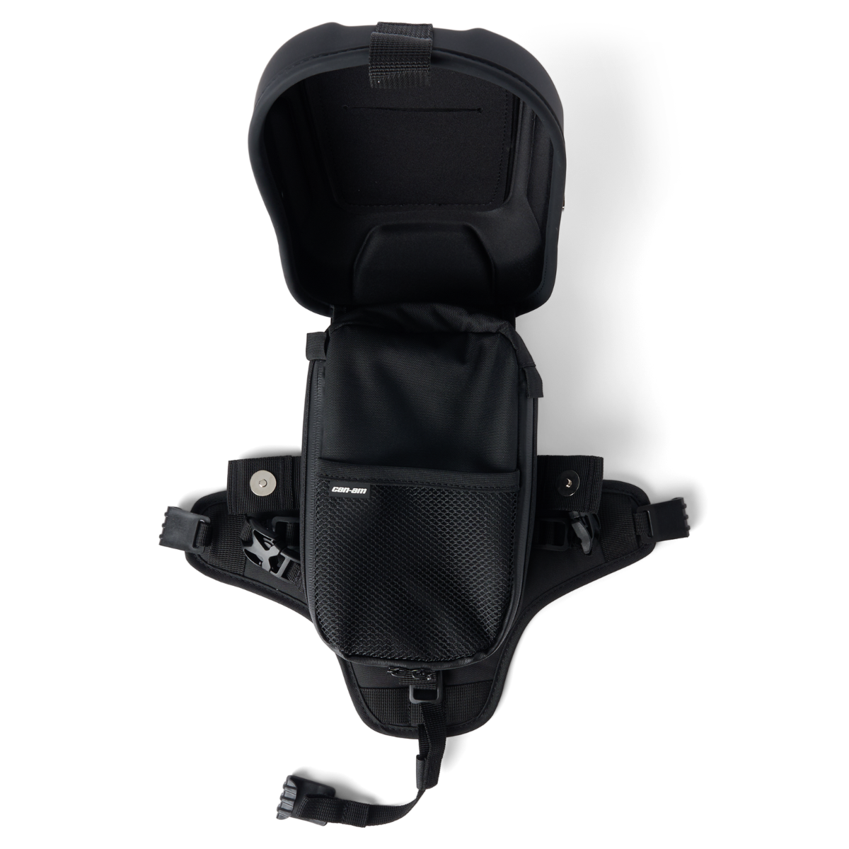 The Can-Am Ryker Tank Bag is the ideal accessory to stow away all your small, essential items, such as keys, wallet and sunglasses, while still keeping them handy. Securely attached in front of you on your tank, it also boasts an integrated smartphone holder that provides you with full visibility of your screen while riding. With its small size, it is easy to take with you when you have to make a pit stop somewhere and don’t want to leave your essentials behind. Safely and securely stow away keys, wallet, ID and more (capacity: 0,75 gal. / 3 L). Integrated mobile phone holder. Convenient easy-access storage at your fingertips. Secure magnetic holding system with extra safety buckles.
