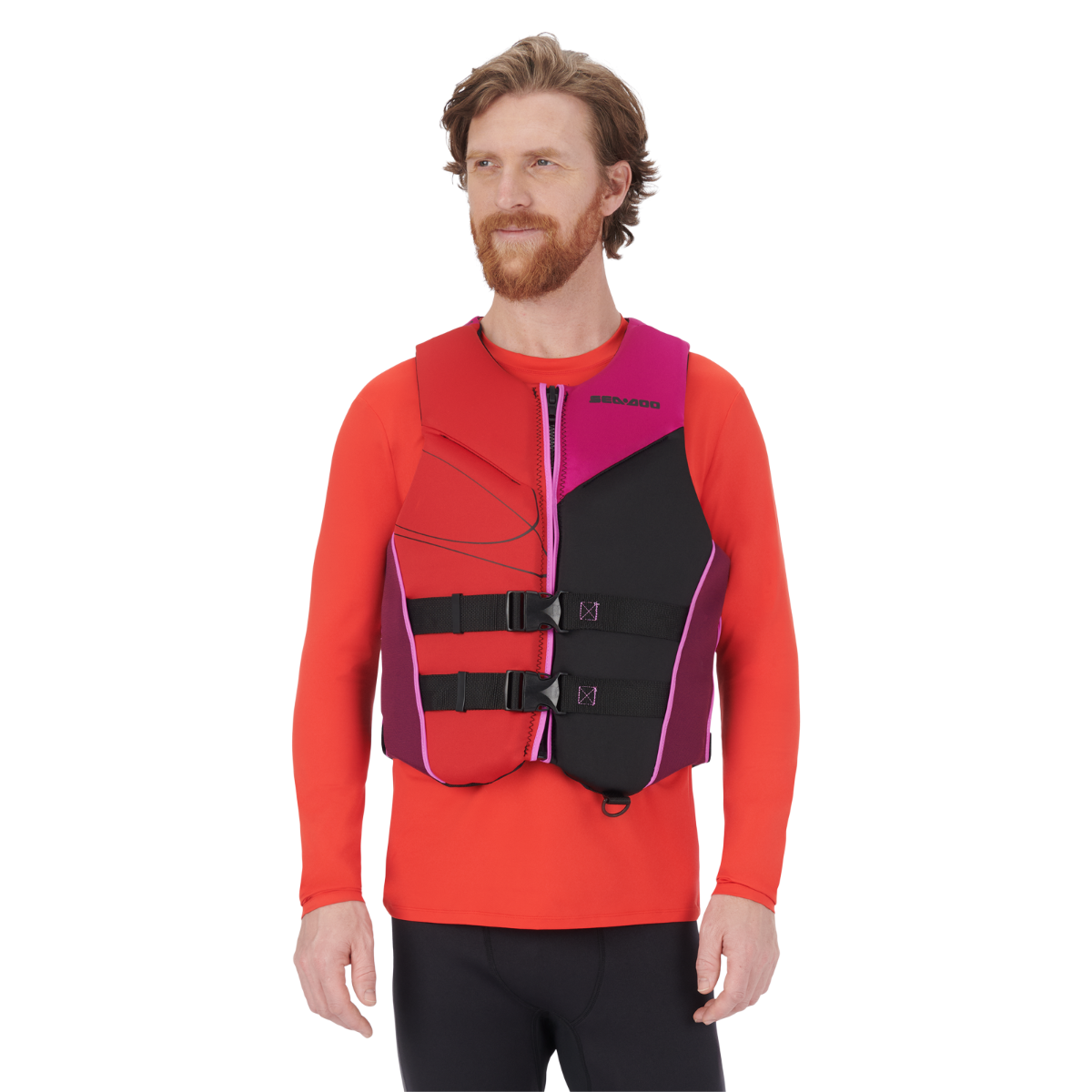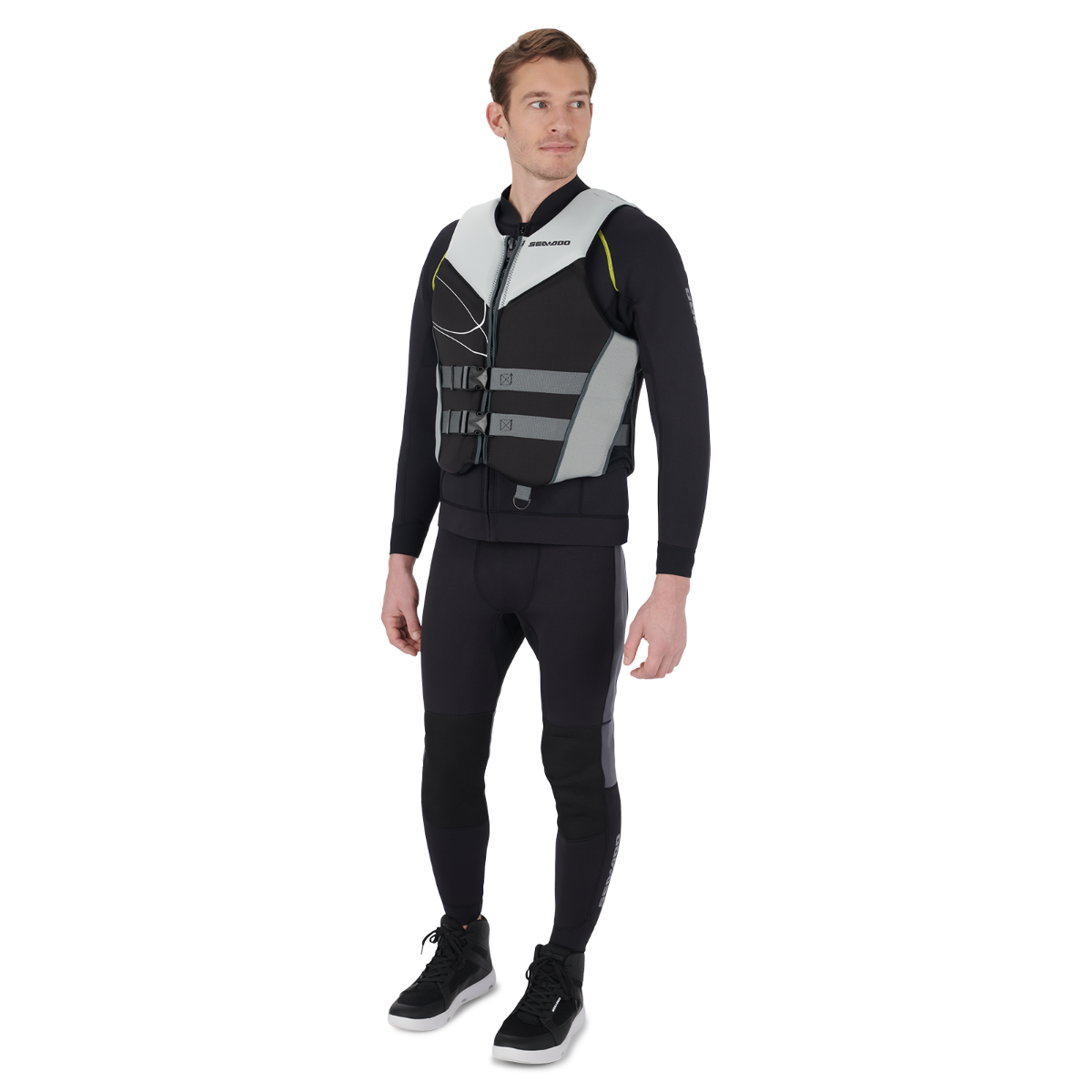 Say hello to your independence from uncomfortable, cumbersome PFDs with the Sea-Doo Freedom PFD Life Jacket. Eco-conscious ecoprene material is made without rubber and designed to dry quickly without extra weight from the PVC and expandable Polyethylene insulation. Give your back an extra boost thanks to the extra foam padding in the lumbar comfort zone, which minimizes lower back pressure and adds support while you're sitting. Other key features include a quick-drying, water draining mesh panel, YKK front zipper, large-cut armholes for maximum range of motion, and stretch side panels. Grab this Coast Guard-approved PFD for your next water adventure. The sizes shown on this page are men's sizes. Environmentally friendly ecoprene material that is rubber free, flexible, lightweight, breathable and quick dry. Combination of PVC and polyethylene foam inserts. LUMBAR COMFORT ZONE: Extra foam padding to minimize the pressure on your lower back while bolstering support. MESH PANEL: Drain away excess water for quick drying and thermal regulated comfort. Comfortable fit. YKK front zipper. Segmentations at front and back for better comfort and ease of movement. Side panels in stretch lining fabric for improved comfort. Armholes cut large for riding comfort. Loop at back neck to attach your goggles to your vest. D-ring for key lanyard. Coast Guard approved. Shell: 100% Polyester Insulation: 50% PVC, 50% Expandable Polyethylene